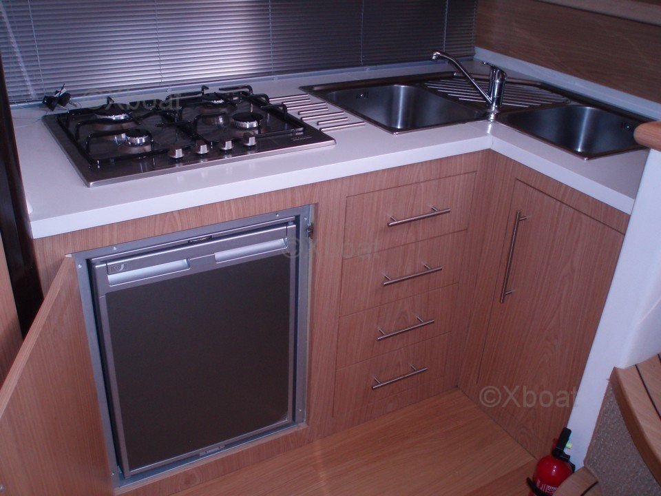 Distribución interior: El interior del MANO 35 HT es espacioso y bien diseñado, con una cómoda cabina principal, una cocina completamente equipada y un baño completo. Los acabados son de alta calidad, con materiales duraderos y estéticos.