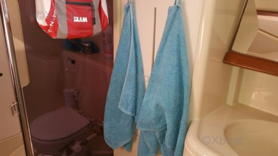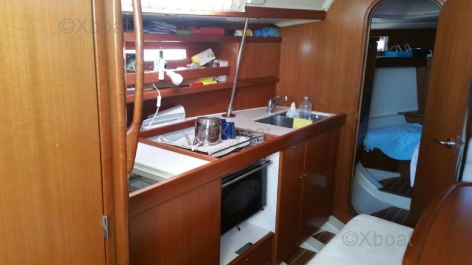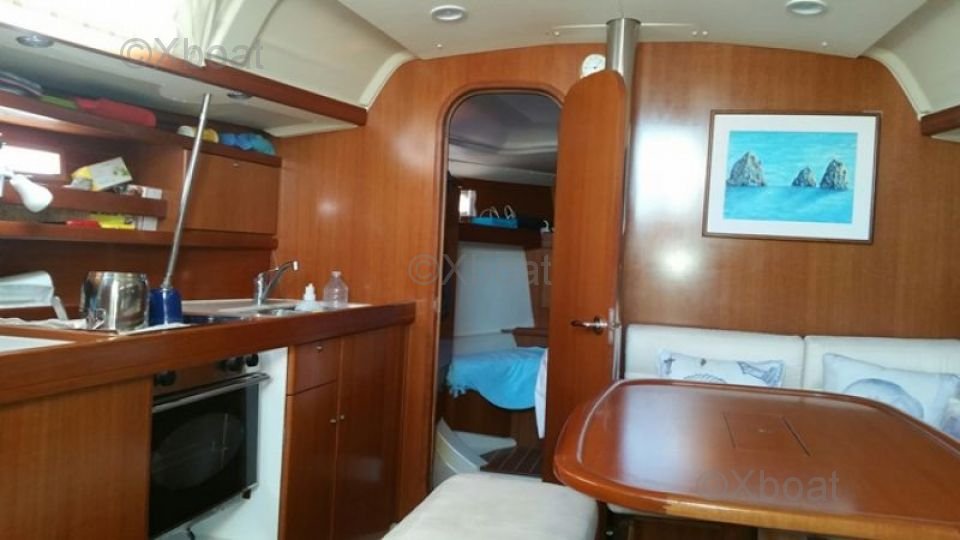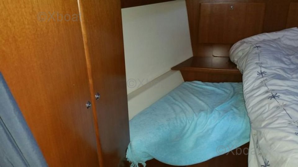 En el interior, el Dufour 365 Grand Large ofrece un área de vida espaciosa y luminosa. La cabina principal cuenta con dos literas dobles, mientras que la cabina de proa puede alojar a dos personas adicionales. La cocina equipada y el baño con ducha y retrete aseguran una comodidad óptima para viajes largos.