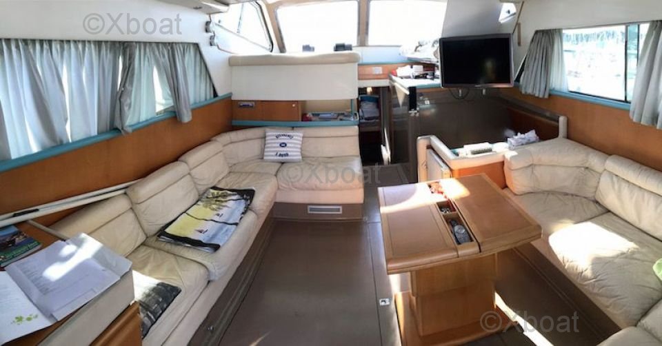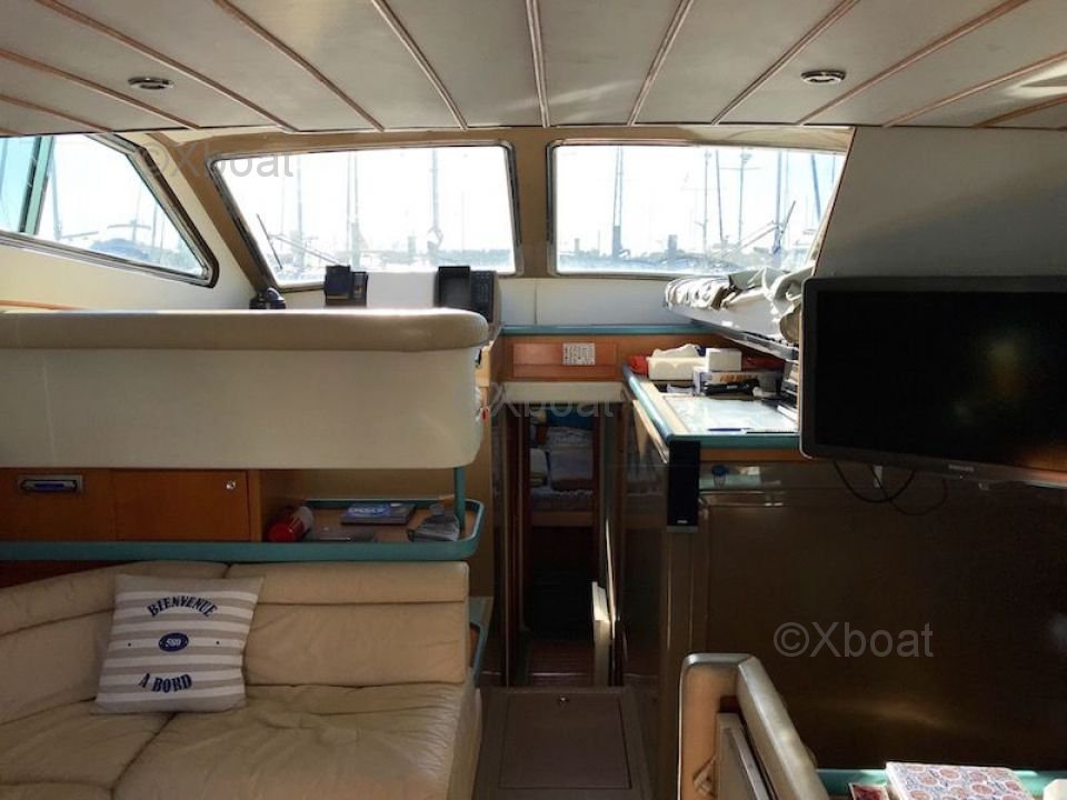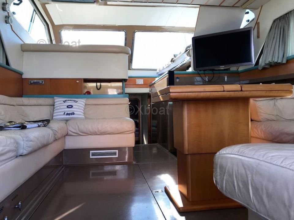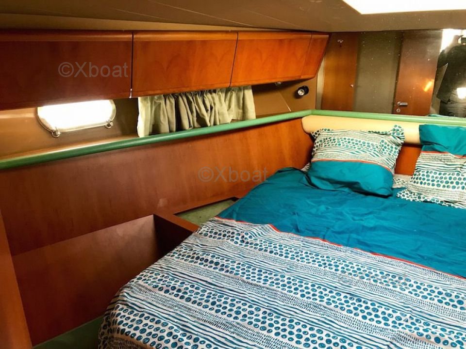 Confort y Equipamiento: El interior del Ferretti Altura 44 S es espacioso y lujoso, con materiales de alta calidad y un diseño moderno. El salón es luminoso y ofrece una vista impresionante del exterior gracias a grandes ventanas. La cocina está bien equipada, y las cabinas ofrecen un confort óptimo para noches tranquilas en el mar.
