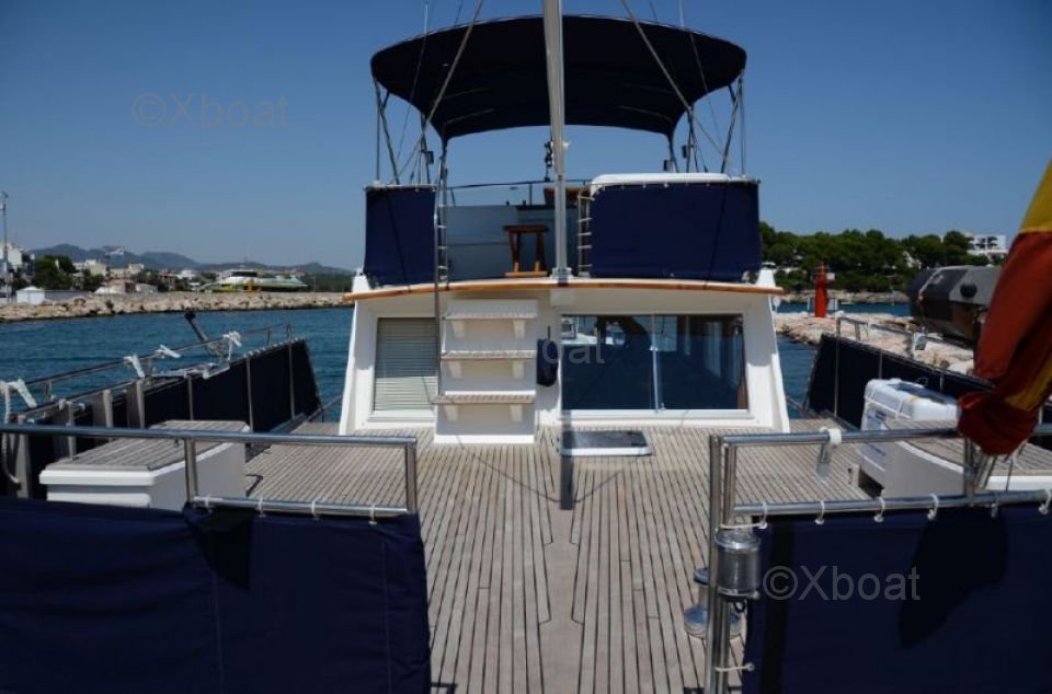 Construcción: El casco del Grand Banks 46 MY está construido con fibra de vidrio reforzada, asegurando gran robustez y durabilidad. La superestructura también está hecha de fibra de vidrio, ofreciendo protección contra los elementos mientras sigue siendo ligera.