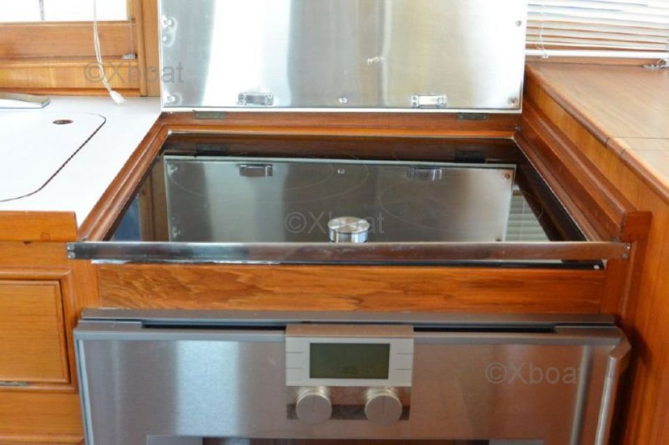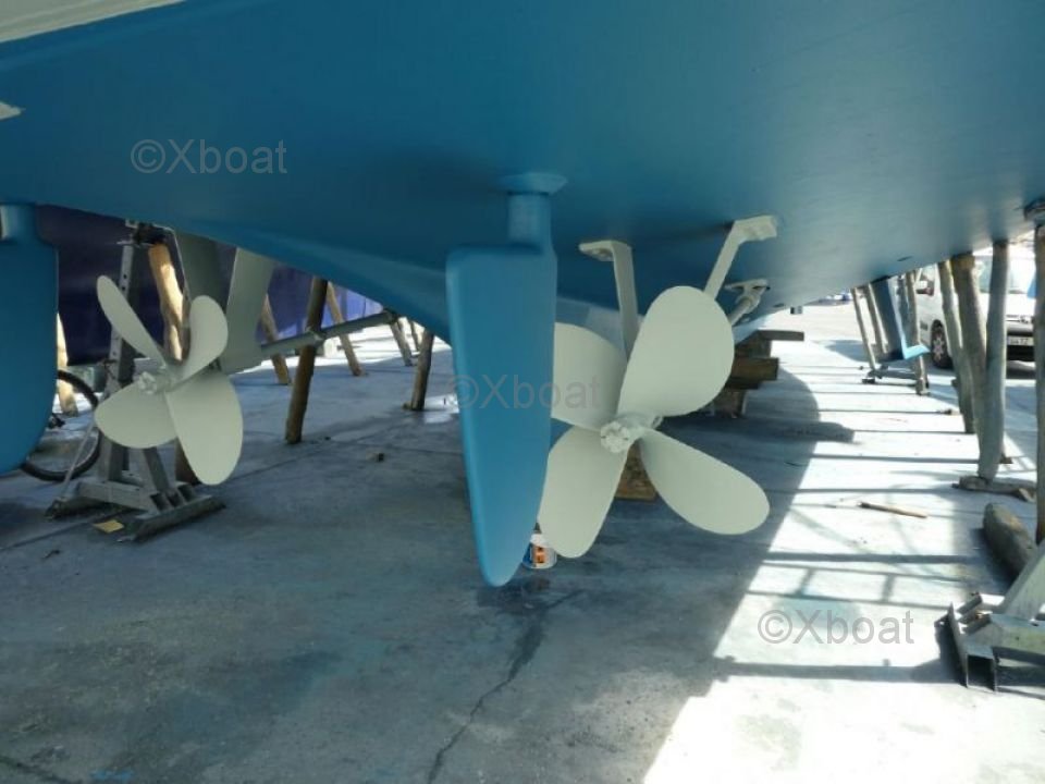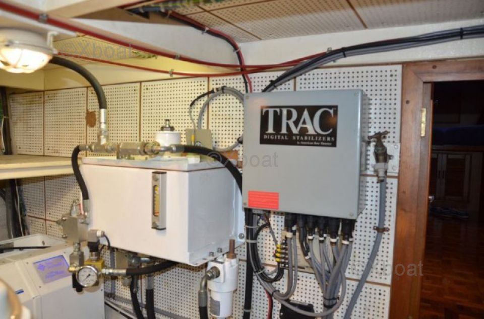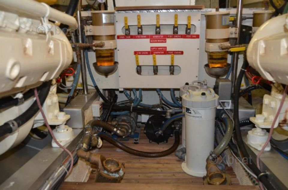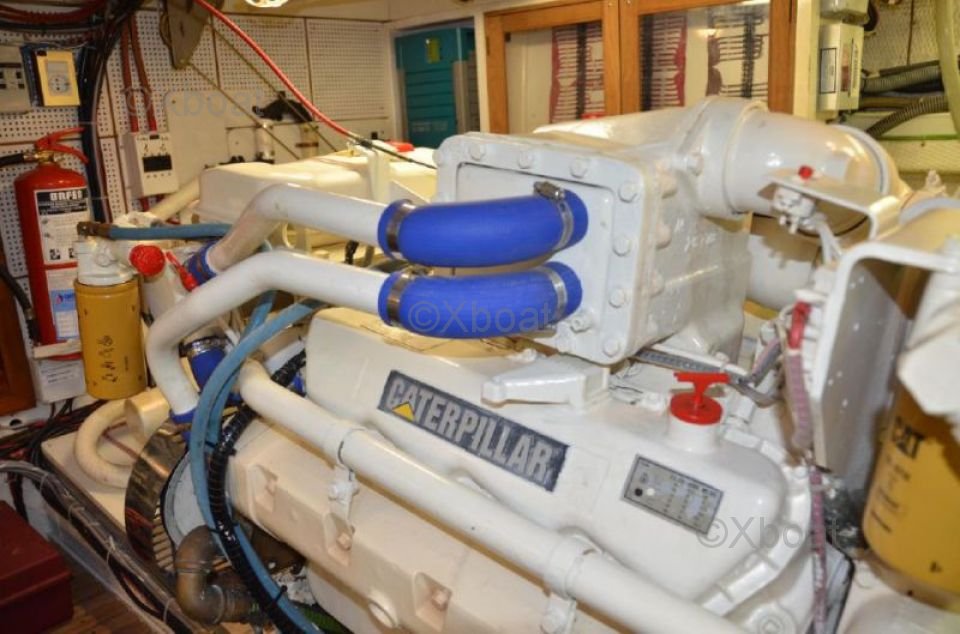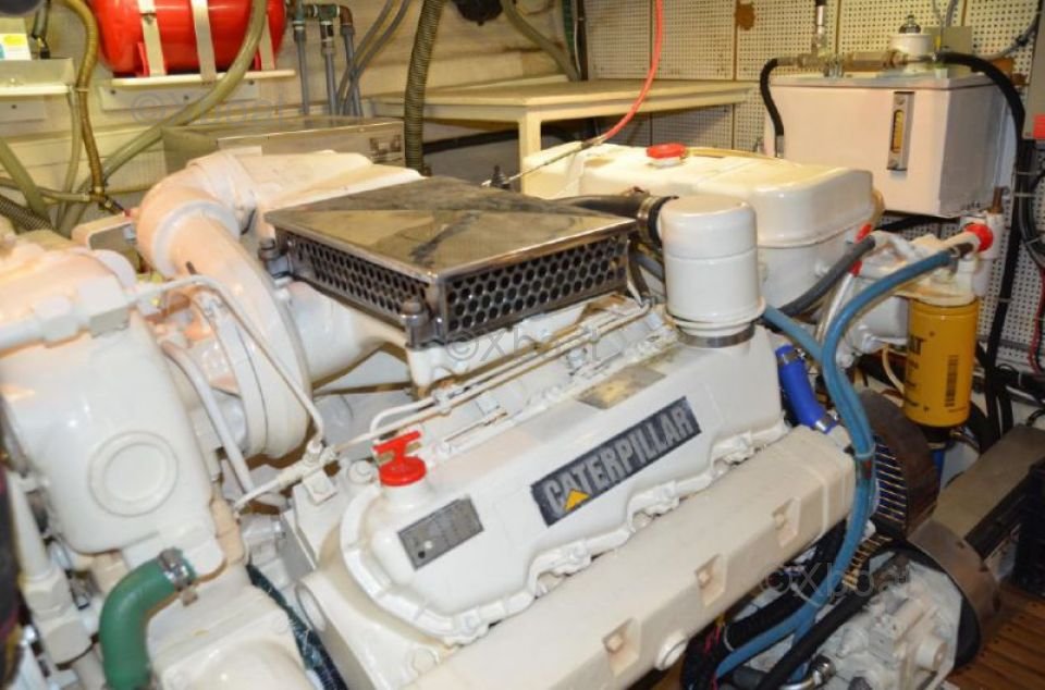 Motor: Este yate generalmente está equipado con motores diésel, a menudo Cummins o Caterpillar, proporcionando una potencia total de 670 a 750 caballos de fuerza. Estos motores aseguran una navegación silenciosa y económica, con un impresionante alcance.