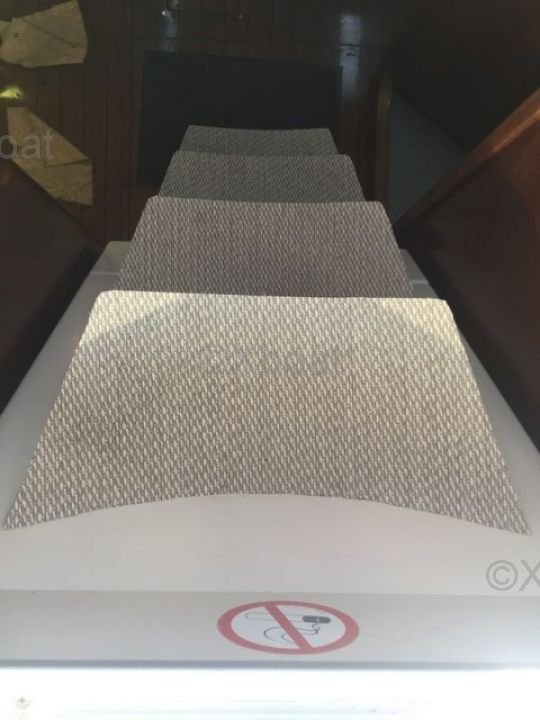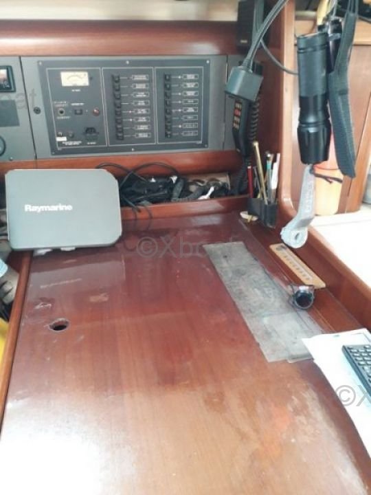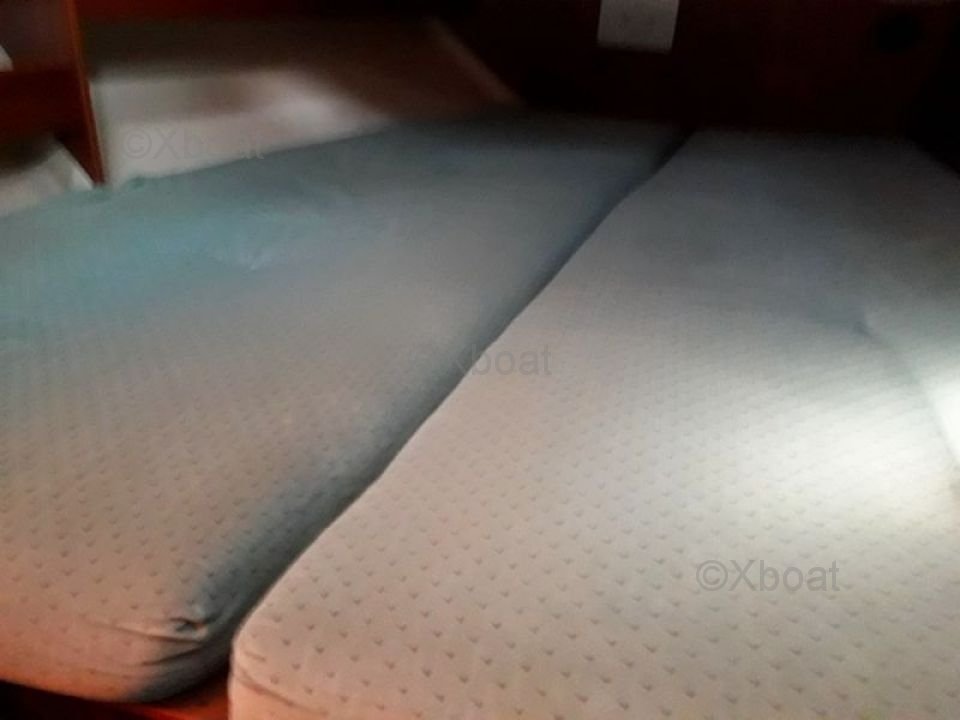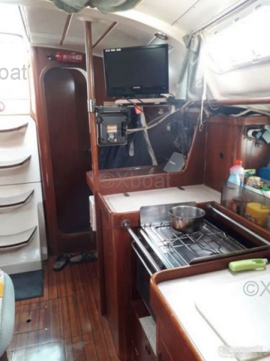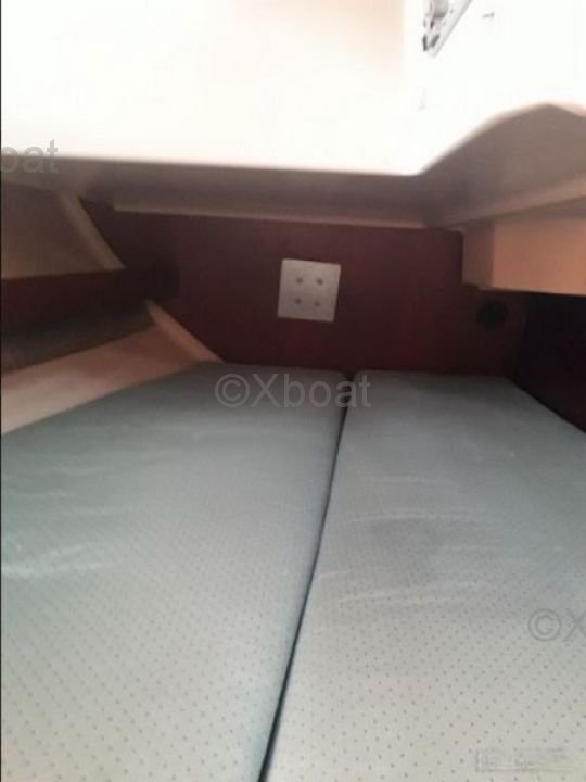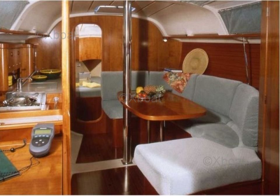 El Oceanis 351 ofrece un generoso espacio interior con dos cabinas dobles y una cabina delantera, ideal para familias o parejas que buscan un poco más de privacidad. La cocina está bien equipada y el salón es espacioso, ofreciendo un confort óptimo para viajes largos. La toldilla es amplia y bien diseñada, con una mesa de cartas y asientos cómodos.
