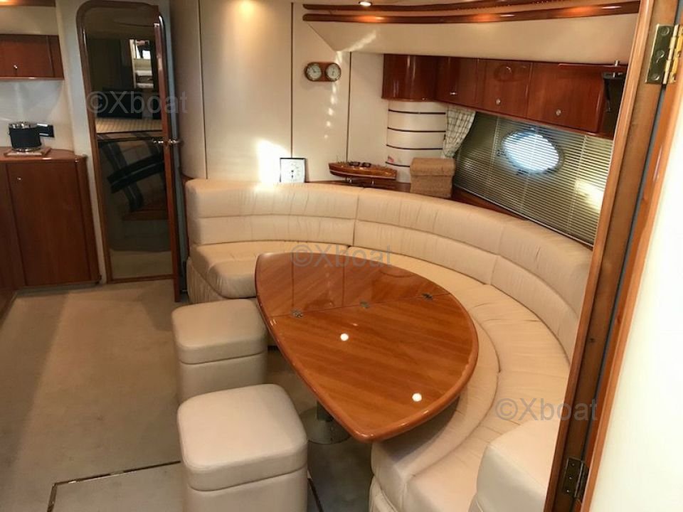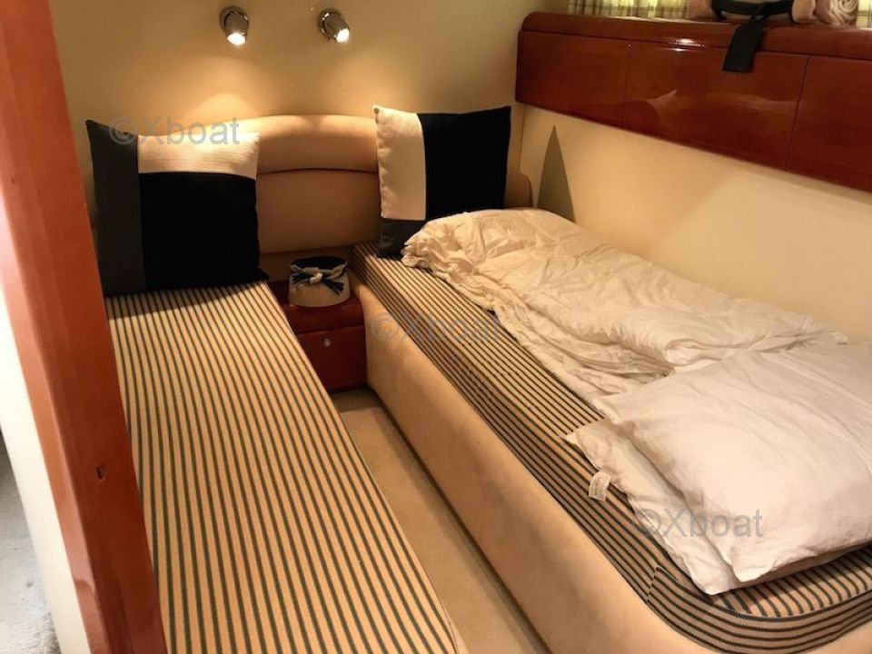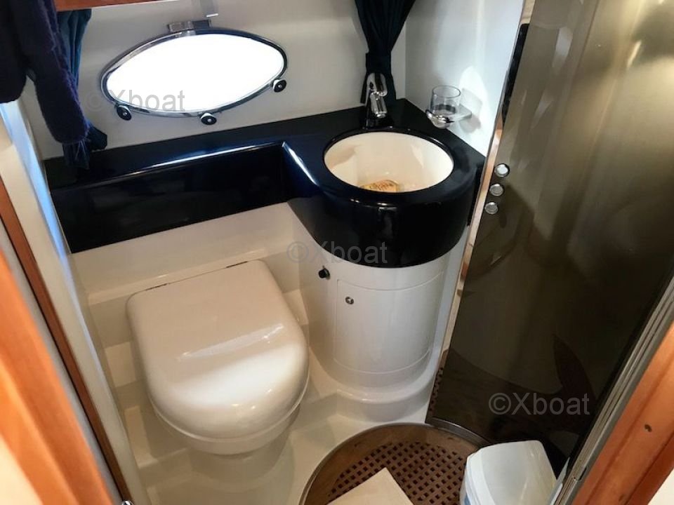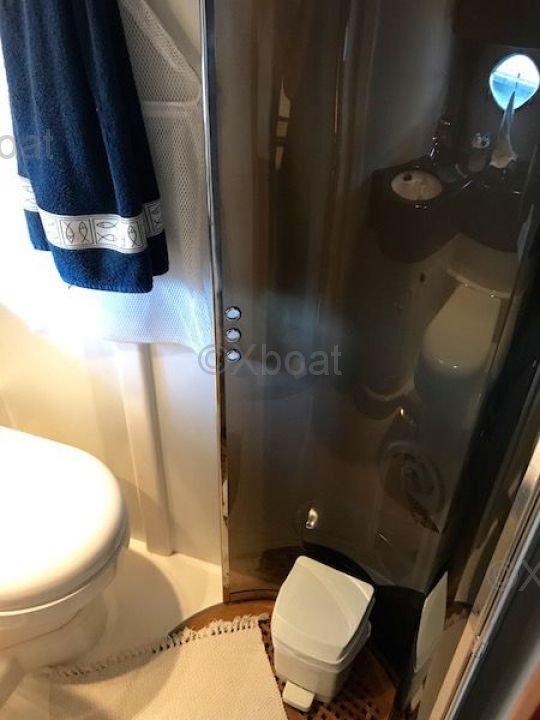 Distribución interior: El yate cuenta con tres cabinas, incluyendo una suite principal en la proa, una cabina doble y una cabina con literas. Cada cabina es espaciosa y bien equipada, ofreciendo una comodidad óptima para los pasajeros. El baño principal está equipado con una ducha separada y una bañera.