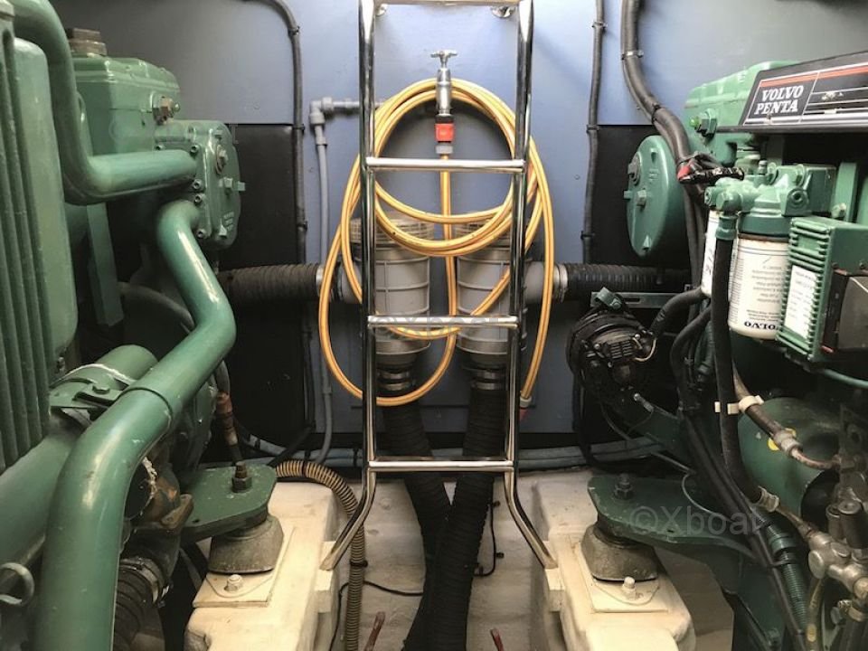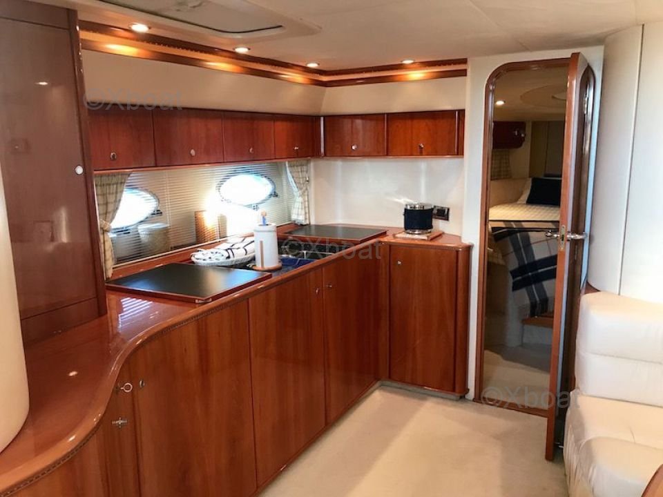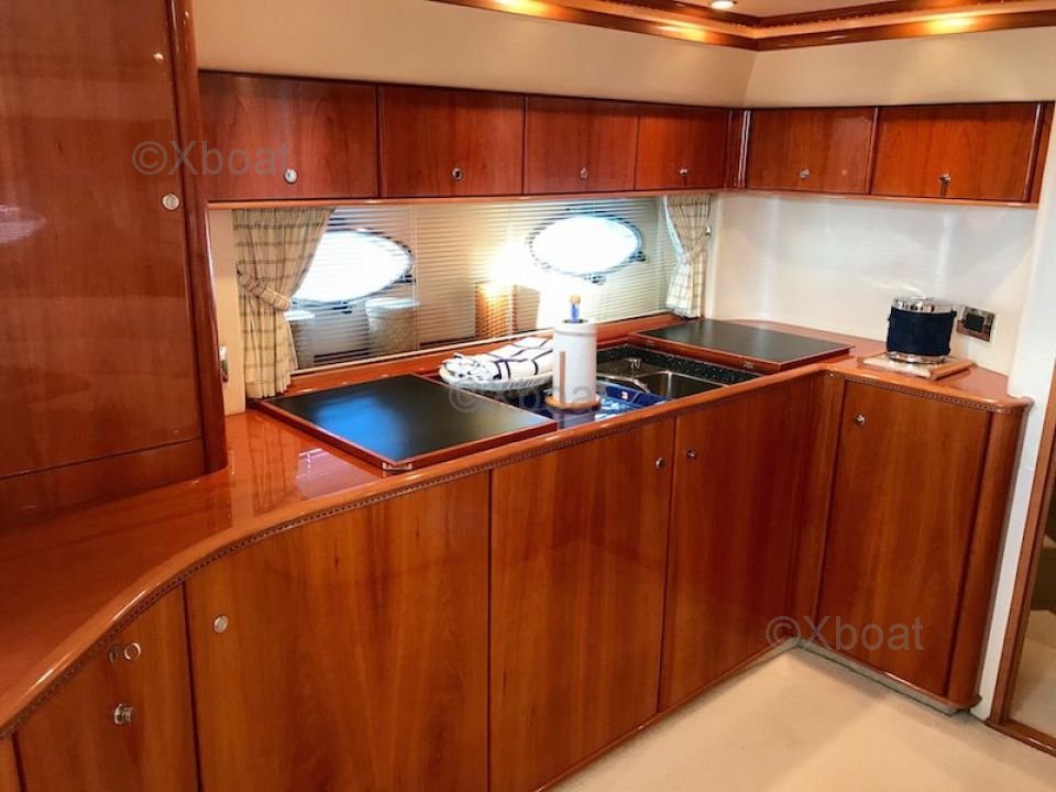 Motor: La Princesa V55 está equipada con motores MAN V8 de 800 caballos de fuerza cada uno, proporcionando una potencia total de 1,600 caballos de fuerza. Estos motores permiten que el barco alcance una velocidad máxima de 30 nudos y una velocidad de crucero cómoda de 25 nudos.