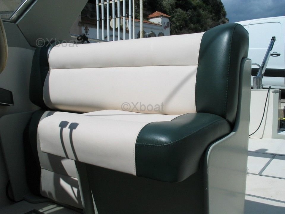 Distribución interior: El interior del Riva 38 Bravo está diseñado con materiales de alta calidad, ofreciendo confort y elegancia sin compromisos. La sala principal es espaciosa y luminosa, con grandes ventanas que ofrecen una vista inmejorable del exterior. La cocina está bien equipada y funcional, ideal para preparar comidas durante largos días en el mar. Las cabinas, generalmente dos, están equipadas con camas cómodas y abundante almacenamiento.