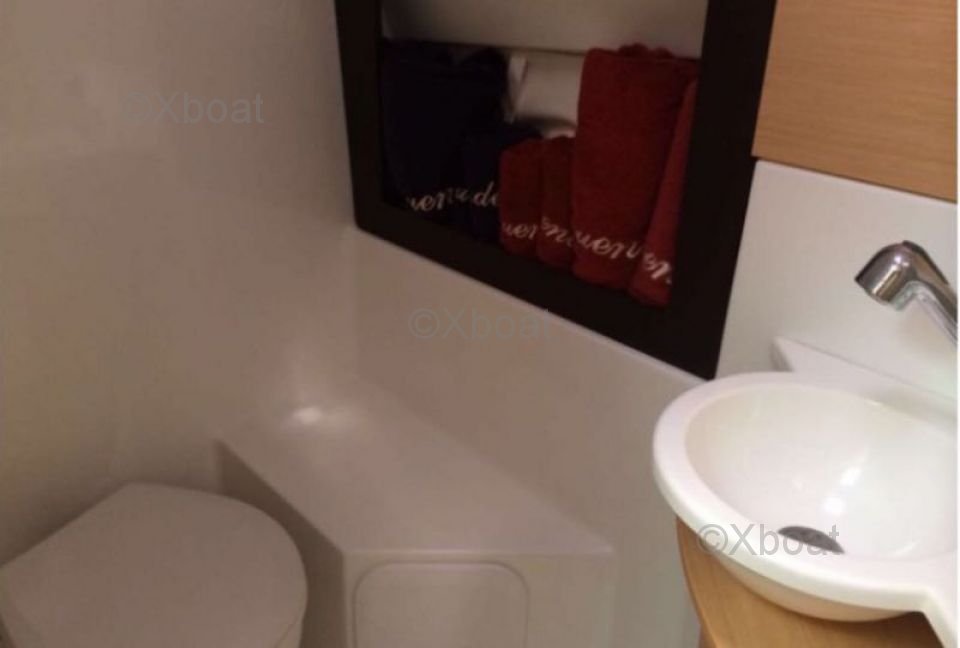 Distribución exterior: La cubierta de popa es espaciosa y bien diseñada, ofreciendo un agradable espacio de vida al aire libre. Los asientos y bancos están diseñados para la comodidad, y hay suficiente espacio para alojar a los invitados. La cubierta de proa también está dispuesta para relajarse al sol.