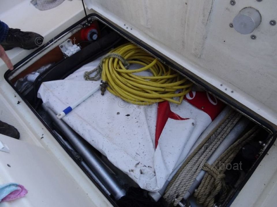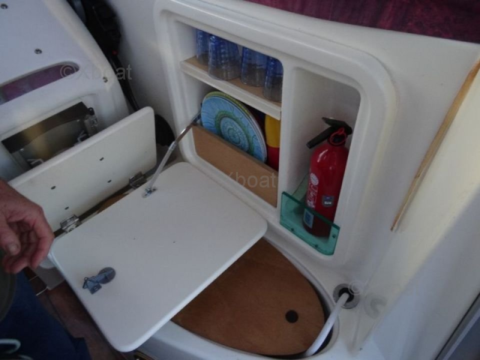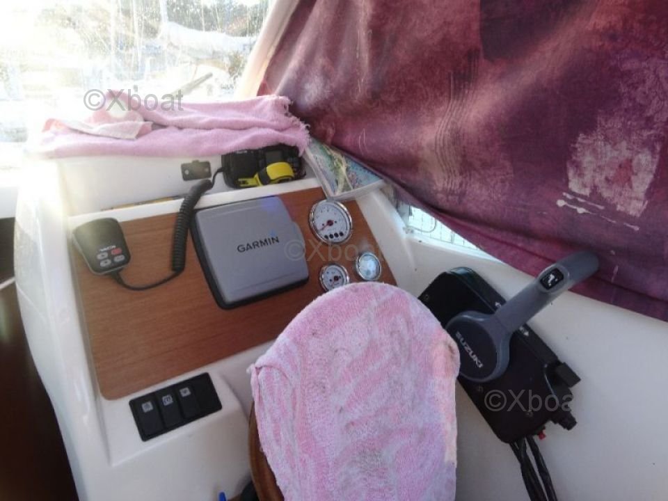 Confort y Equipamiento: La cubierta es espaciosa y bien diseñada, con asientos ergonómicos y almacenamiento integrado. El timón está equipado con todos los instrumentos de navegación necesarios, incluyendo un GPS, un sonar y un radar. La cabina ofrece espacio para dormir para dos personas, con instalaciones sanitarias completas.