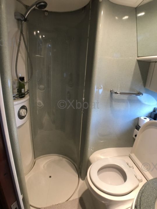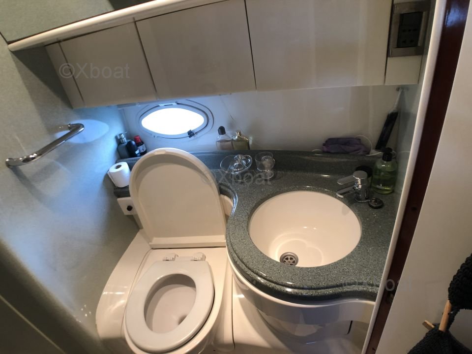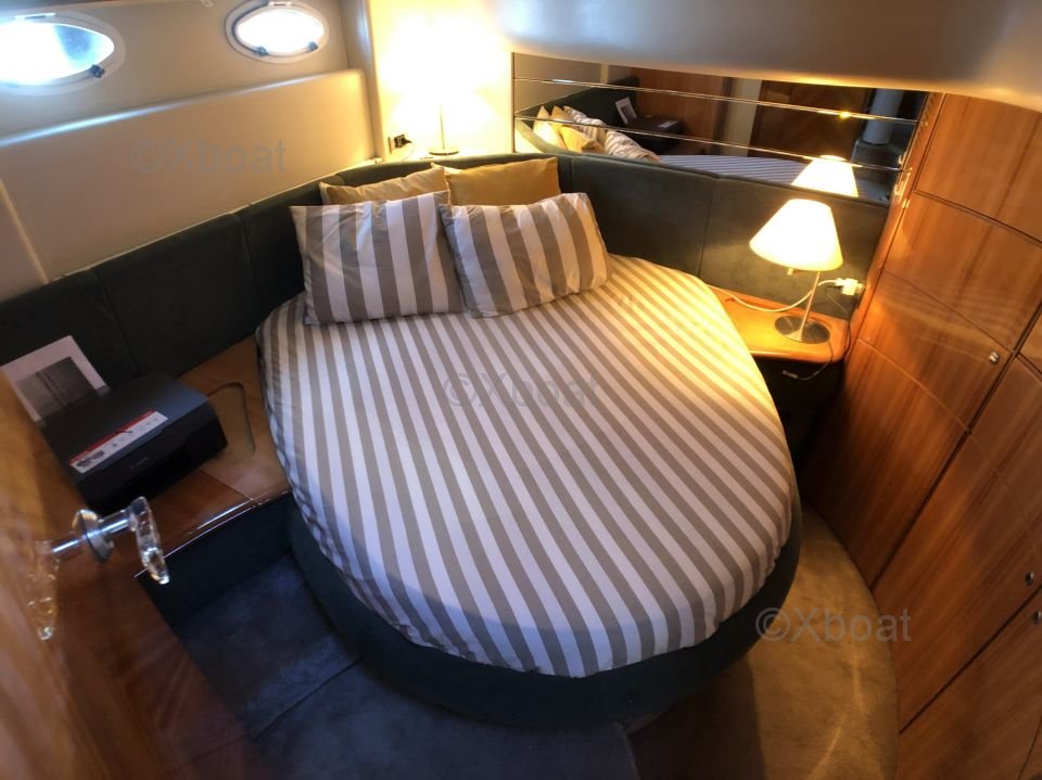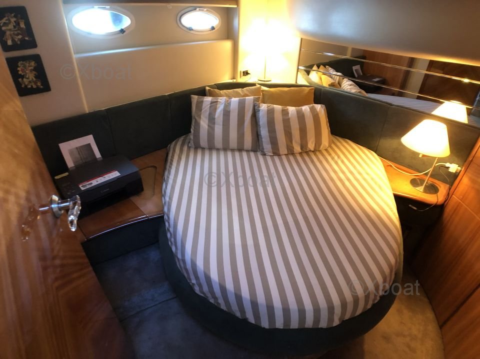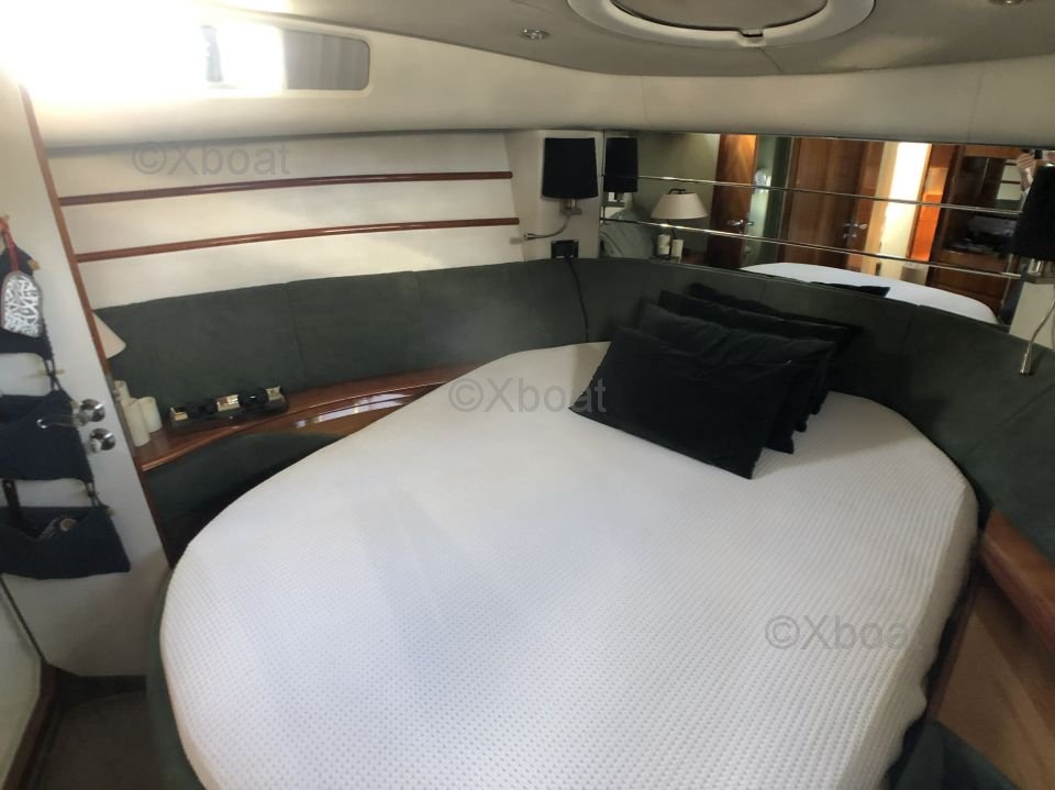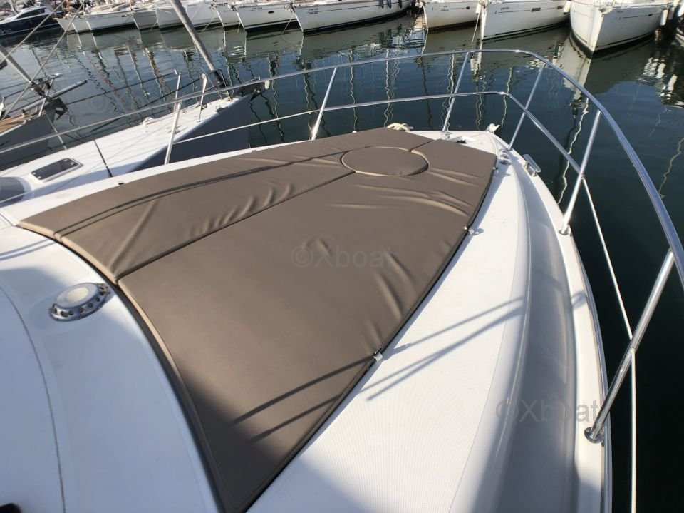 Distribución interior: El yate ofrece una distribución interior espaciosa y lujosa, con tres cabinas y dos baños. La cabina principal se encuentra en la proa y ofrece una vista impresionante gracias a sus grandes ventanas. Las cabinas de invitados son cómodas y bien equipadas, con camas dobles y amplio almacenamiento.