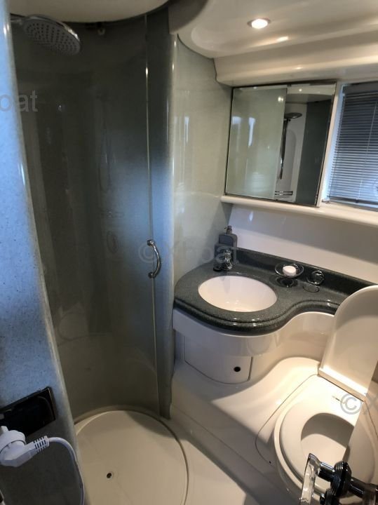 Confort y entretenimiento: El Azimut 46 Fly también está equipado con numerosas características de confort, como aire acondicionado, un sistema de sonido y opciones de entretenimiento como un sistema de ducha exterior y una plataforma de natación trasera.