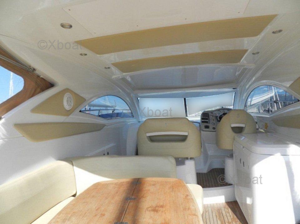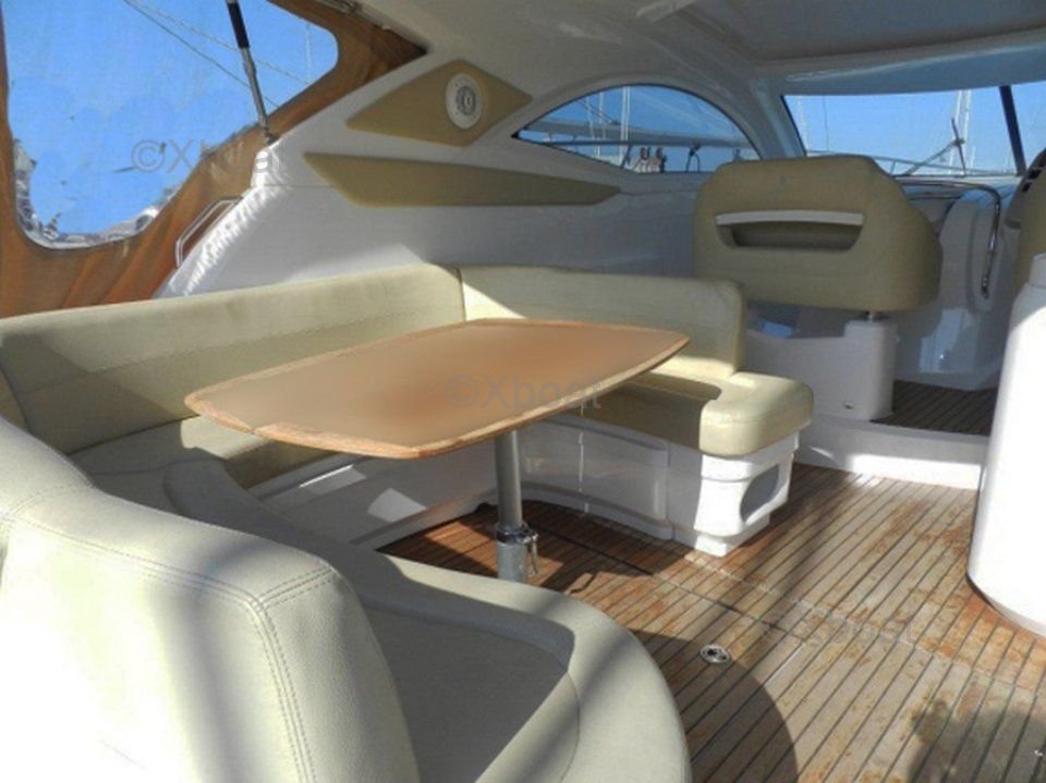 El Monte Carlo 37 Hard Top está equipado con una cubierta dura de aluminio, proporcionando una protección óptima contra los elementos mientras permite un fácil movimiento en la cubierta. La amplia cockpit está diseñada para acomodar cómodamente a los pasajeros, con asientos ergonómicos y una mesa plegable para comer.