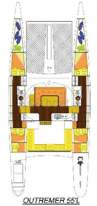 El Outremer 55 Light está construido con un casco de poliéster reforzado con fibra de vidrio, ofreciendo una excelente resistencia y durabilidad. El diseño está optimizado para una navegación rápida y estable, con especial atención en la reducción de la resistencia al avance.