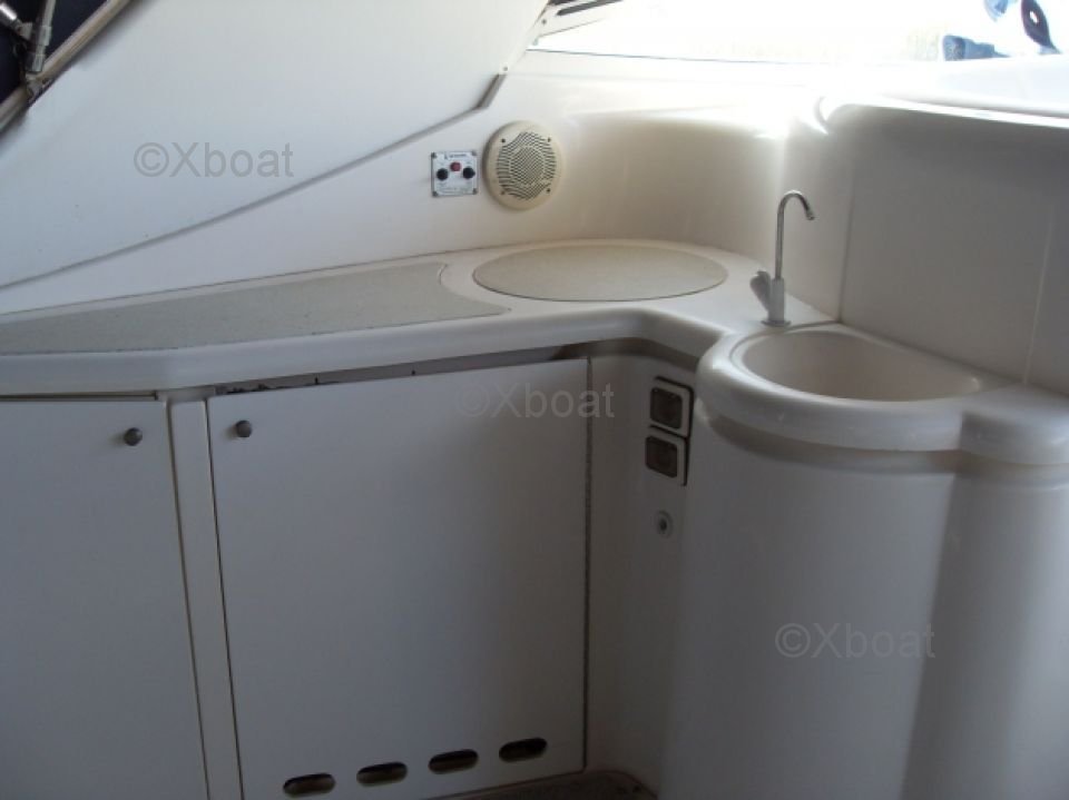 El Cruisers 4370 está equipado con dos potentes motores diésel que ofrecen una excelente maniobrabilidad y un consumo eficiente de combustible. La cubierta espaciosa y bien diseñada te permite disfrutar al máximo de tu tiempo en el mar, ya sea para pescar, nadar o simplemente relajarte.