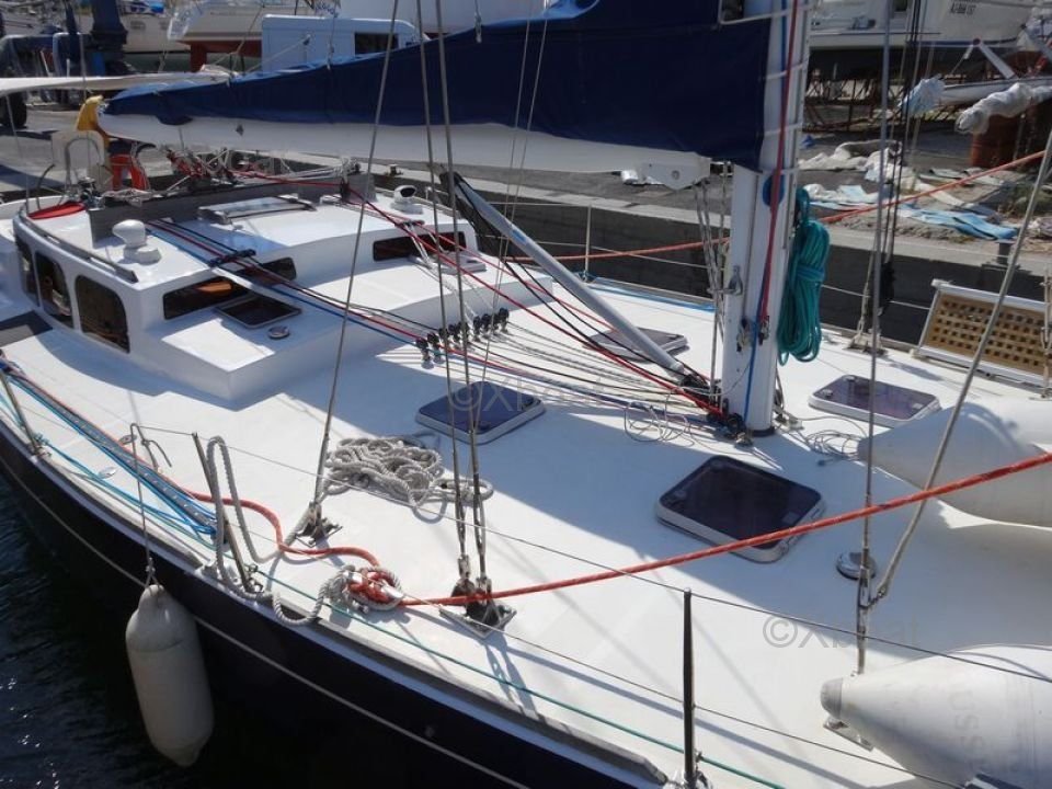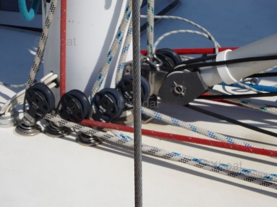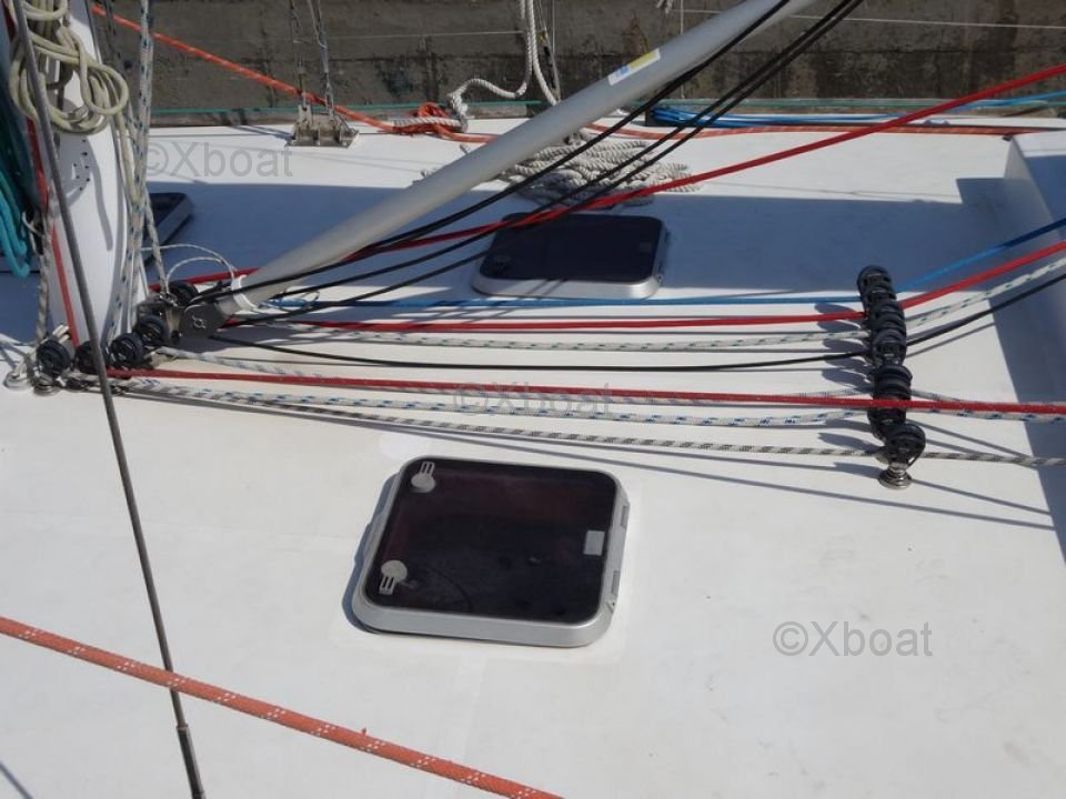 Diseño y Rendimiento: El Dynamique 52 está diseñado para ofrecer una excelente estabilidad y un impresionante rendimiento de navegación. Su casco de fibra de vidrio y cubierta sandwich aseguran una robustez y durabilidad excepcionales. El aparejo está optimizado tanto para la navegación rápida y segura, ya sea de crucero o de regata.