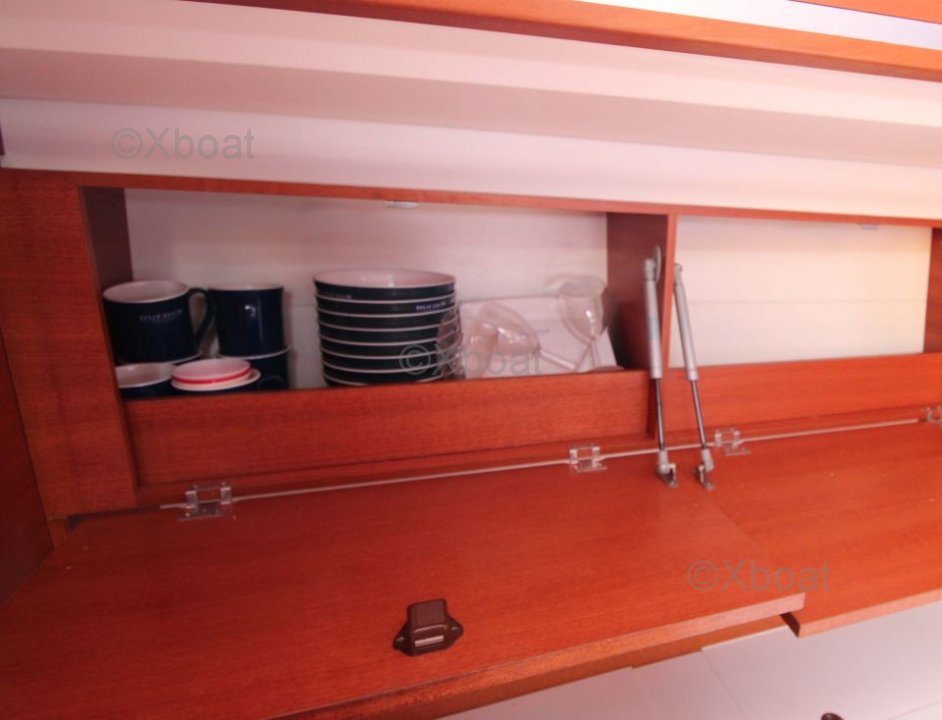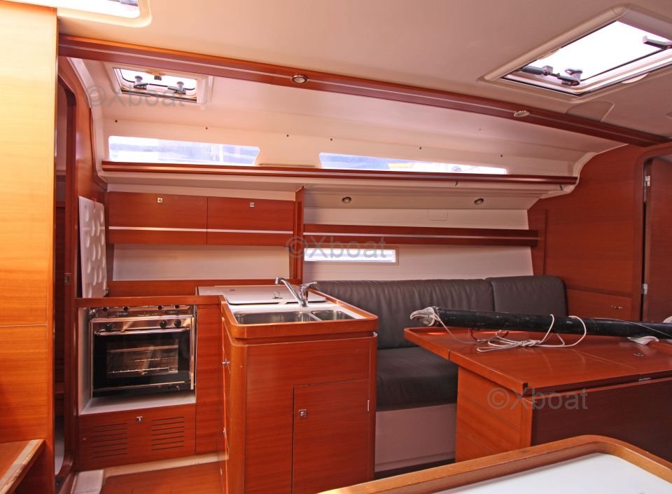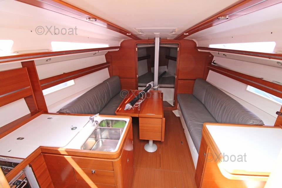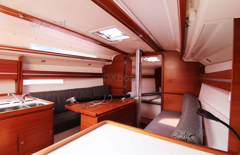 El Dufour 36 Performance ofrece un interior espacioso y bien diseñado con acabados de alta calidad. El barco está equipado con 6 literas distribuidas en 2 camarotes dobles y un camarote de proa. La cocina es funcional y bien equipada, mientras que el salón es luminoso y acogedor.