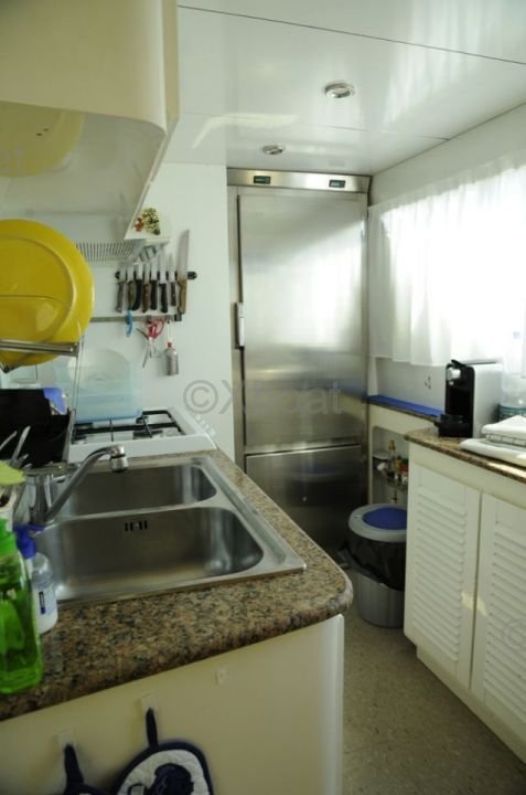 Equipamiento: El Canados 65 está equipado con numerosas características de vanguardia, como sistemas de navegación modernos, estabilizadores de rodadura, generadores de corriente y sistemas de aire acondicionado. La cocina está completamente equipada para satisfacer las necesidades de los huéspedes.