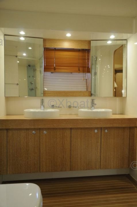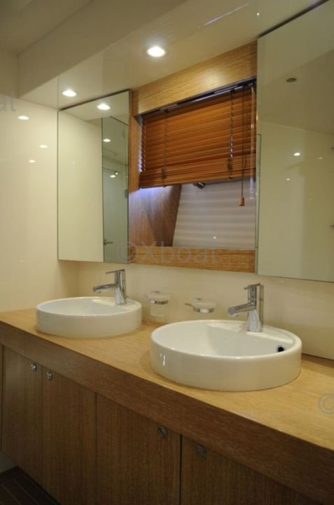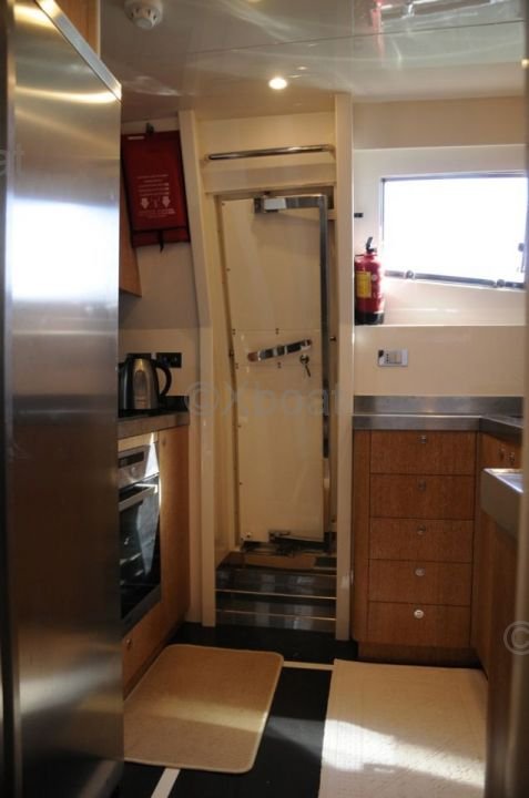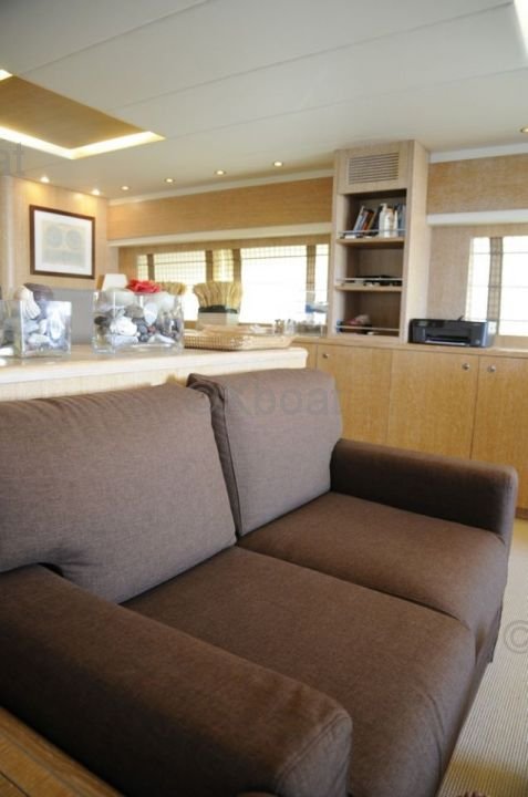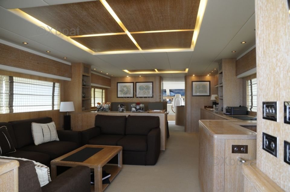 El interior del barco está diseñado con materiales de alta calidad, ofreciendo el máximo confort. Los espacios de vida son espaciosos y luminosos, con acabados elegantes y equipos modernos. La cocina está completamente equipada y las cabinas ofrecen un confort excepcional para dormir.