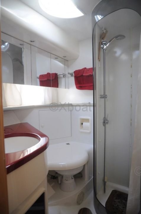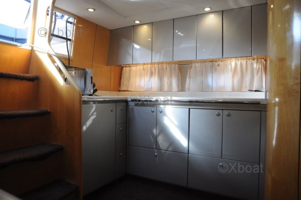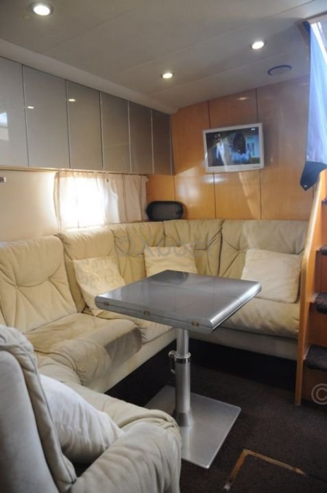 Distribución interior: El interior del Fairline 41 Targa está diseñado para el confort y la funcionalidad. Cuenta con dos cabinas privadas, cada una con camas dobles, así como un baño completo con ducha separada. La sala de estar y la cocina son espaciosas y bien equipadas, ofreciendo todo el confort necesario para viajes prolongados.