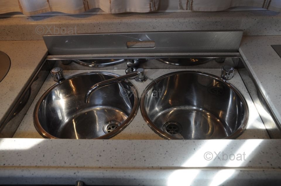 Distribución exterior: La cubierta de popa es espaciosa y bien diseñada, con asientos cómodos y una zona de relax. La cubierta superior ofrece una vista impresionante y es ideal para los días soleados. El barco también está equipado con numerosas opciones de ocio, como un sistema de sonido, una ducha exterior y equipo de pesca.