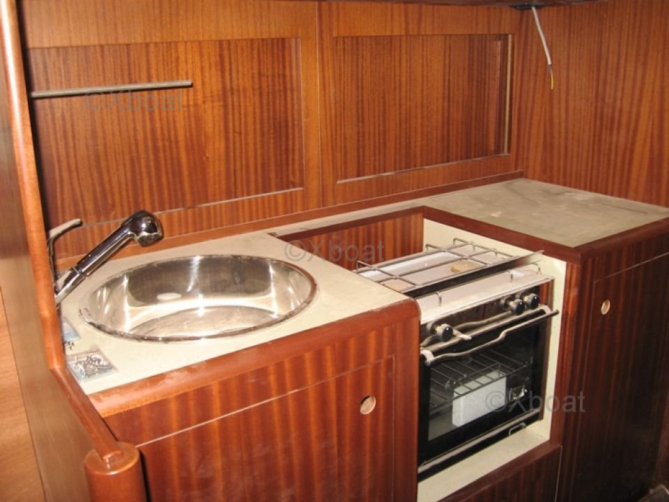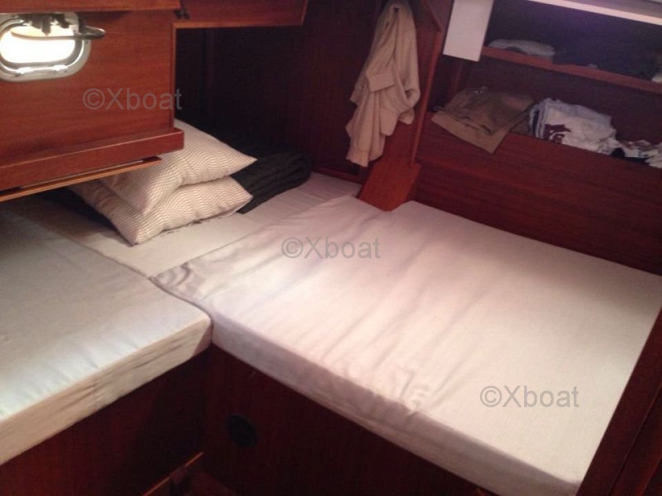 En el interior, el barco ofrece un espacio de vida cómodo con tres cabinas y seis literas, ideal para salidas en familia o con amigos. La cocina equipada y las instalaciones sanitarias funcionales completan el diseño interior, proporcionando todo el confort necesario para navegaciones prolongadas.