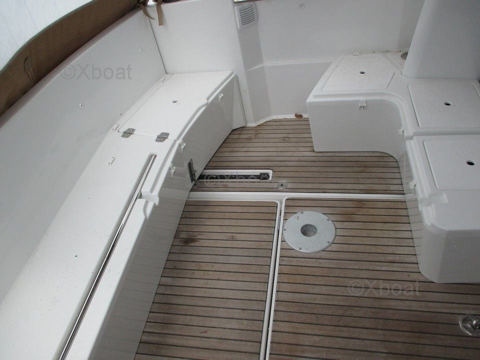 Interior: El Merry Fisher 855 ofrece un espacio de vida cómodo con una cabina bien equipada. Cuenta con una cocina completamente equipada, un baño con ducha y WC, y un área de asientos que se convierte en un espacio para dormir. La cubierta es espaciosa y tiene asientos cómodos para disfrutar de los días en el mar.