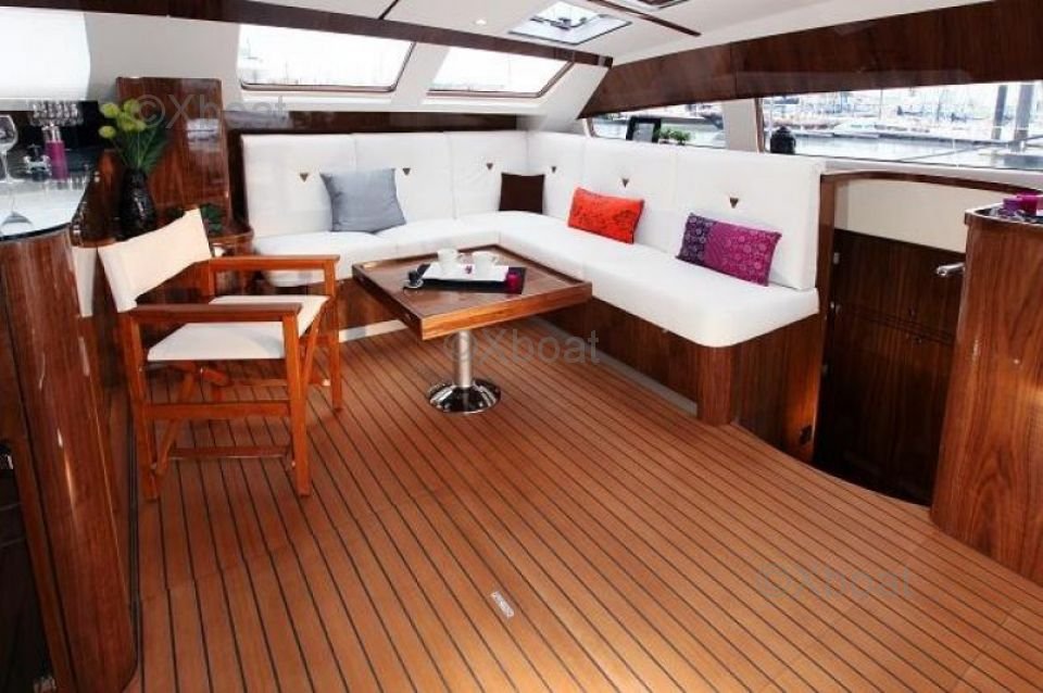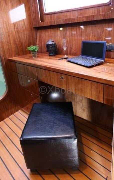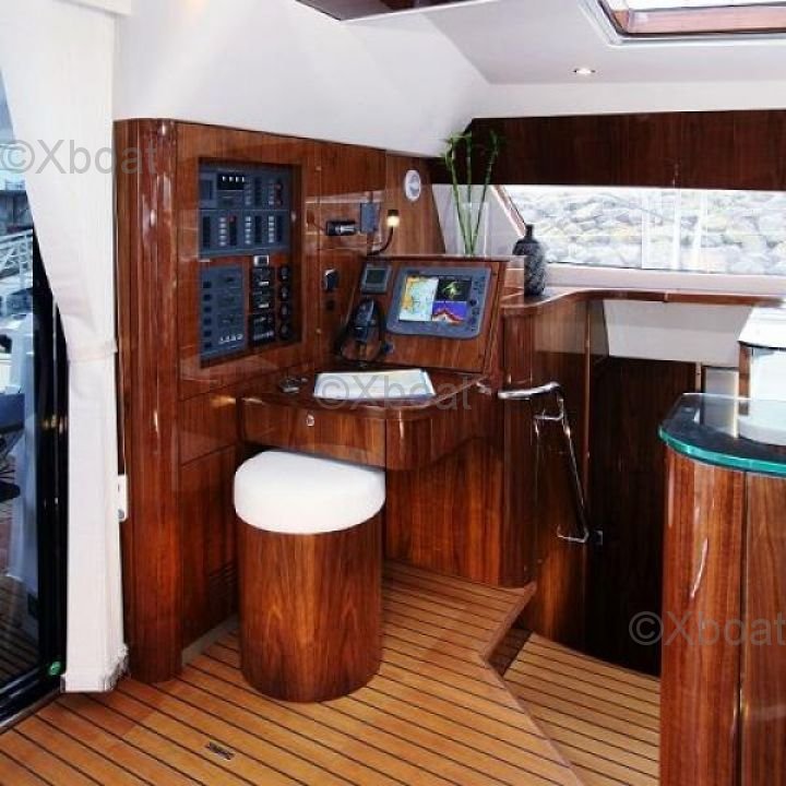 El Privilege Series 5 está equipado con dos motores Yanmar de 54 caballos de fuerza cada uno, proporcionando buena potencia para maniobras y movimientos. La cubierta es espaciosa y bien diseñada, con un cockpit protegido y un techo elevado para una mejor visibilidad. El interior es lujoso, con acabados de alta calidad y espacios de vida cómodos.