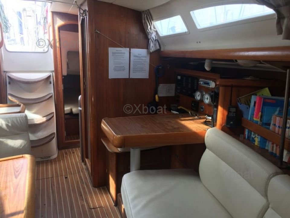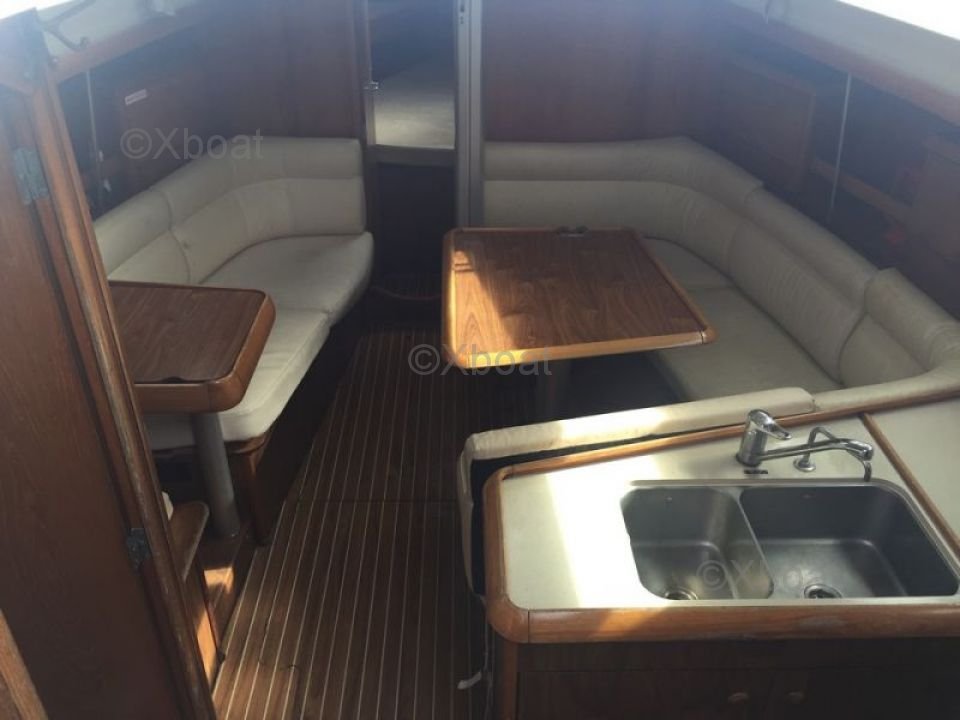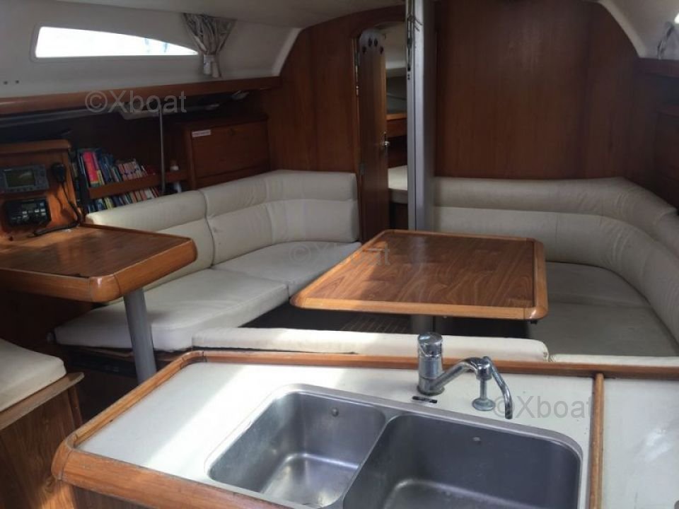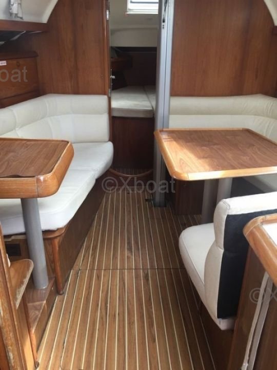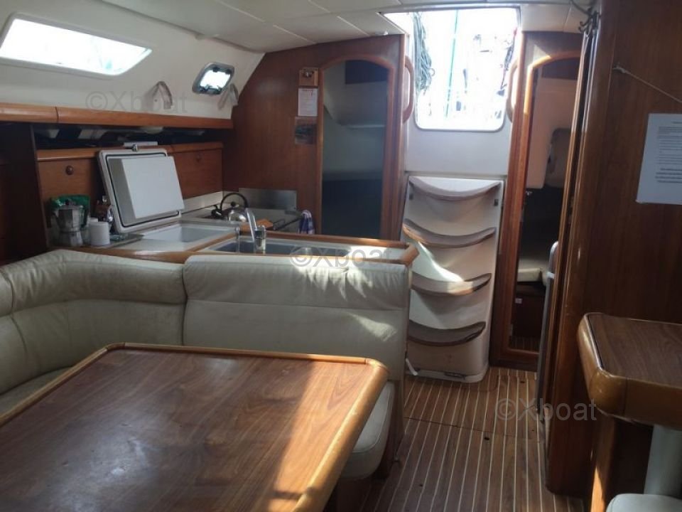 En el interior, el Sun Fast 37 ofrece una distribución funcional con cabinas cómodas y una cocina bien equipada. Los acabados son meticulosos, reflejando la calidad de la construcción de Jeanneau.