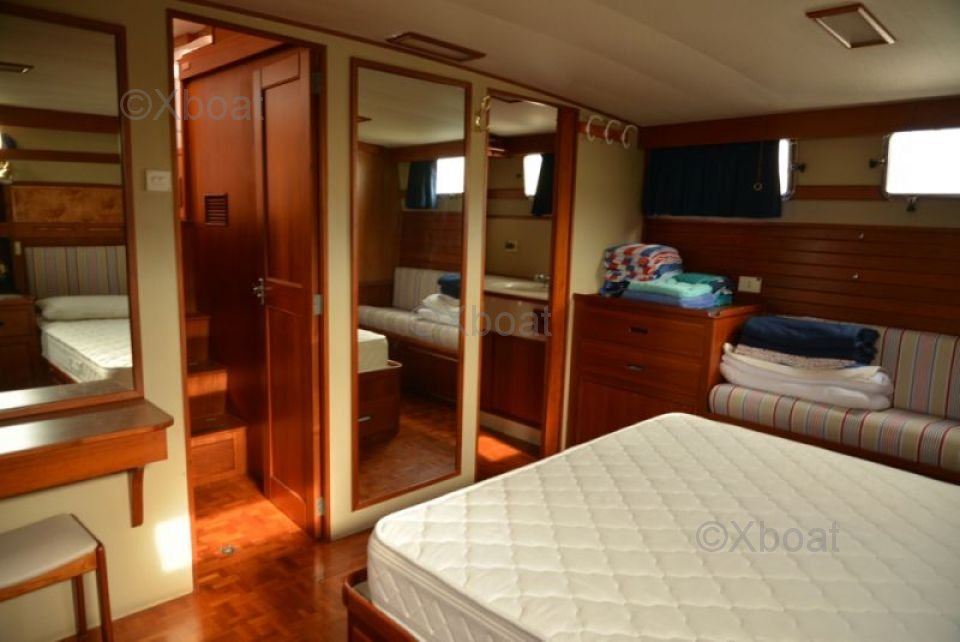 Seguridad y Comodidad: El Grand Banks 49 está diseñado con altos estándares de seguridad, incluyendo sistemas de detección de humo y gas, así como extintores de incendios automáticos. La comodidad se asegura mediante aislamiento acústico y térmico, así como un sistema de calefacción centralizada.
