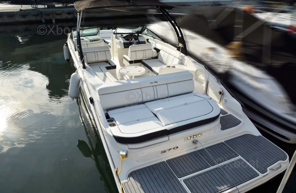 El Sea Ray 270 Sun Deck es un barco de recreo versátil y elegante, diseñado para ofrecer una experiencia marítima inolvidable. Este modelo de Sea Ray es especialmente apreciado por su amplia zona de vida al aire libre y su rendimiento náutico.