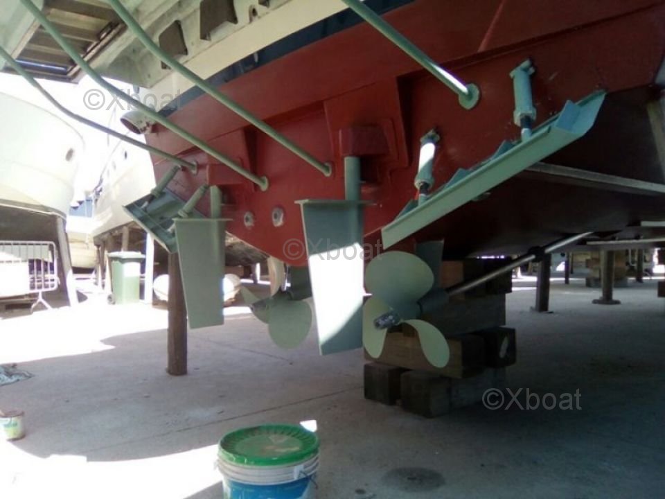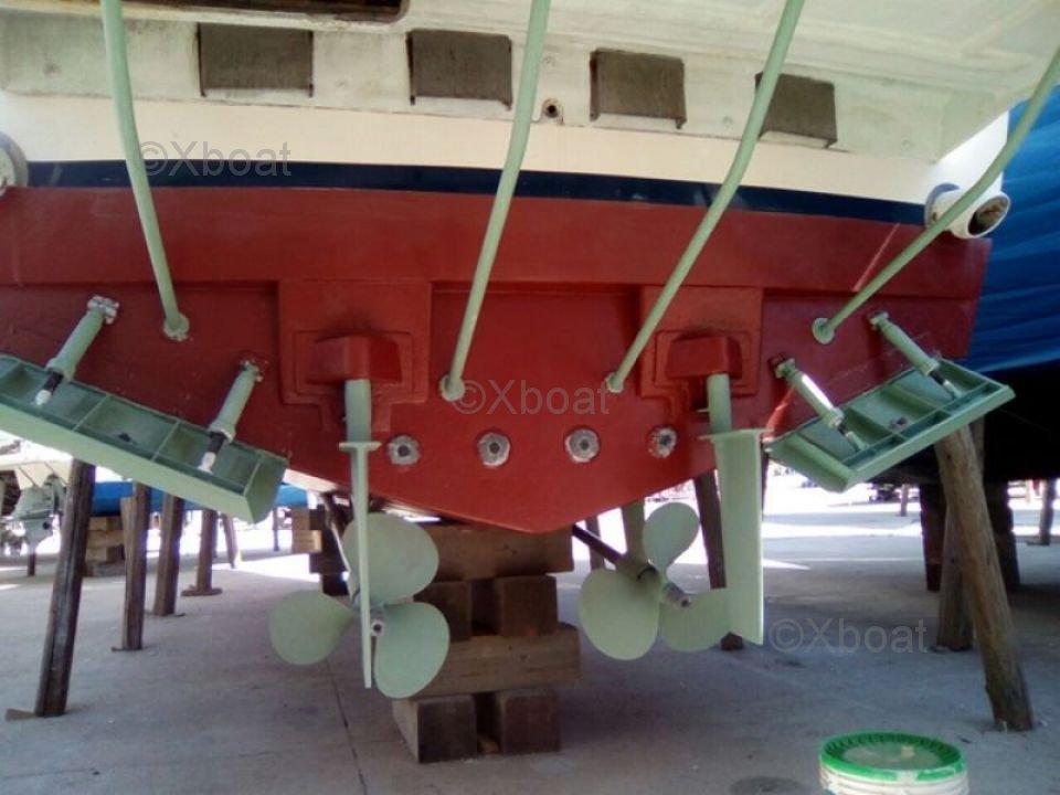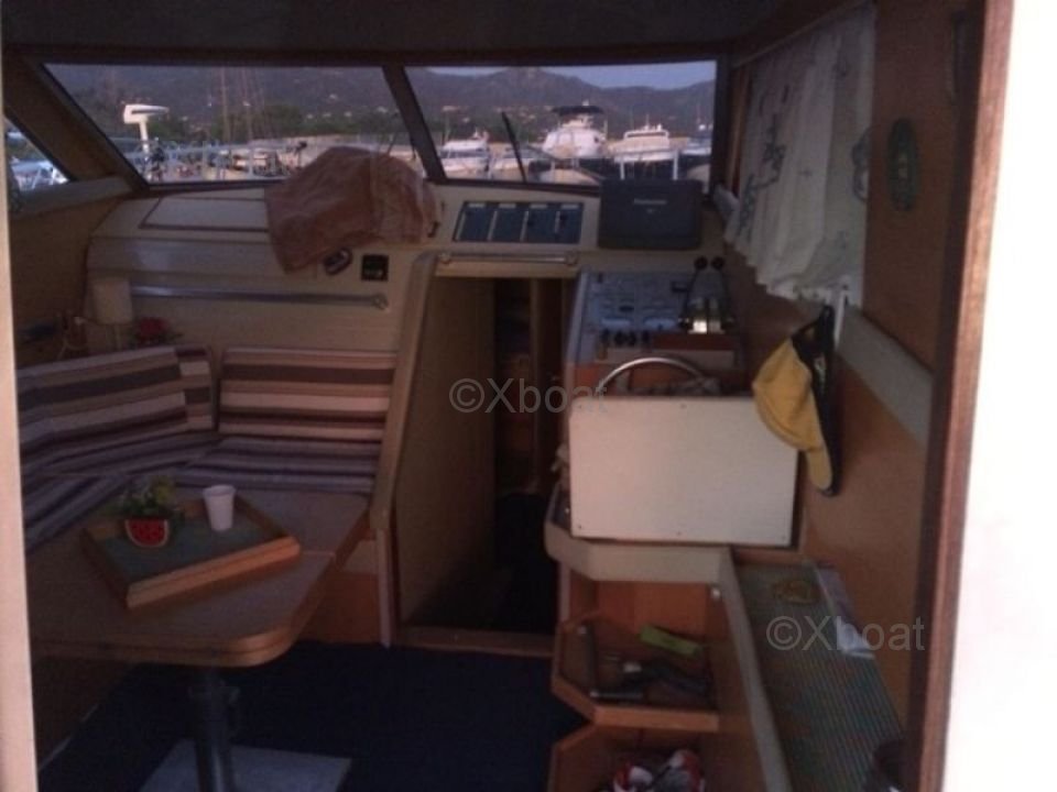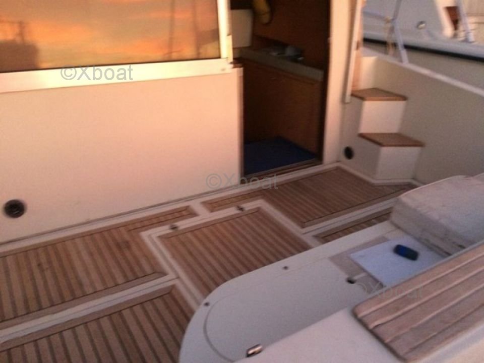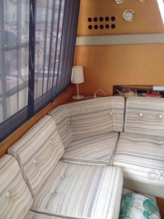 Diseño exterior: La cubierta superior es espaciosa y ofrece un espacio de vida al aire libre ideal para relajarse y disfrutar de los paisajes marinos. La flybridge está equipada con asientos cómodos y una mesa de comedor, perfecta para comidas al aire libre. Además, el barco está equipado con un sistema de sonido y una barbacoa para momentos de relajación inolvidables.