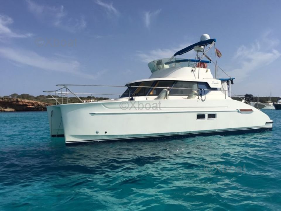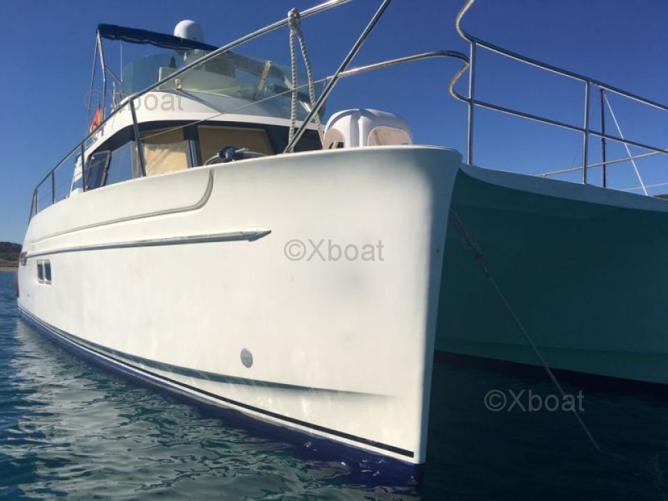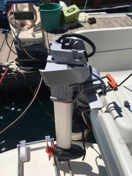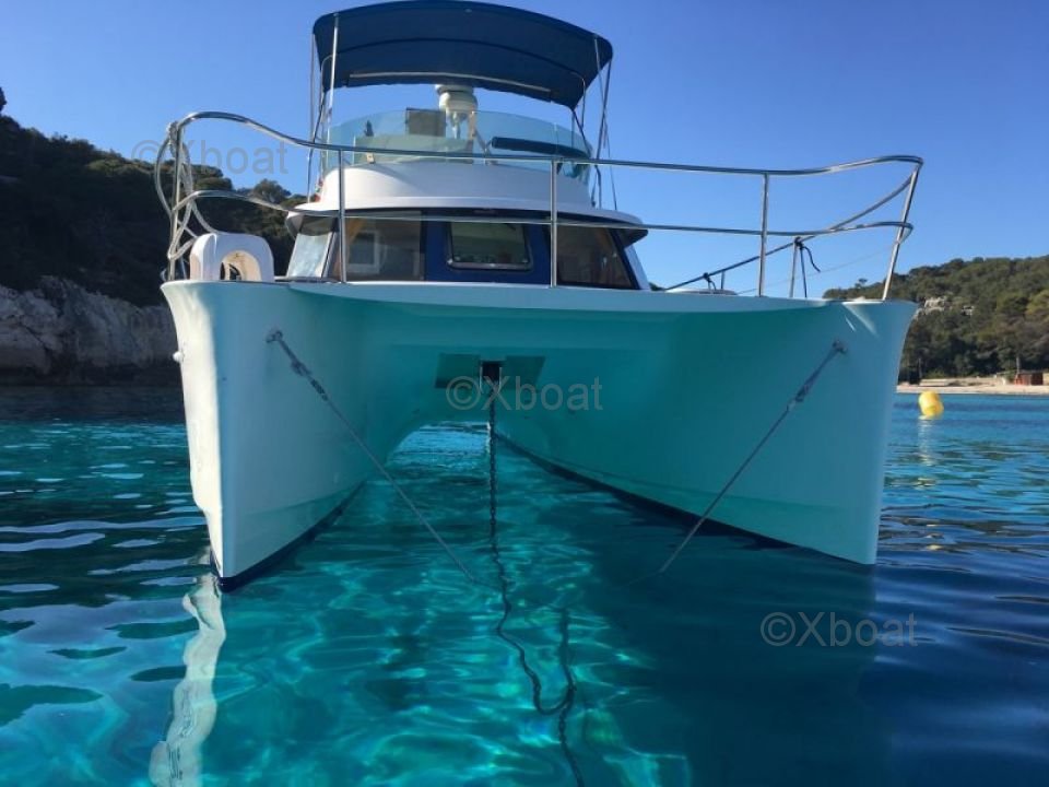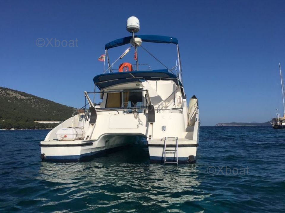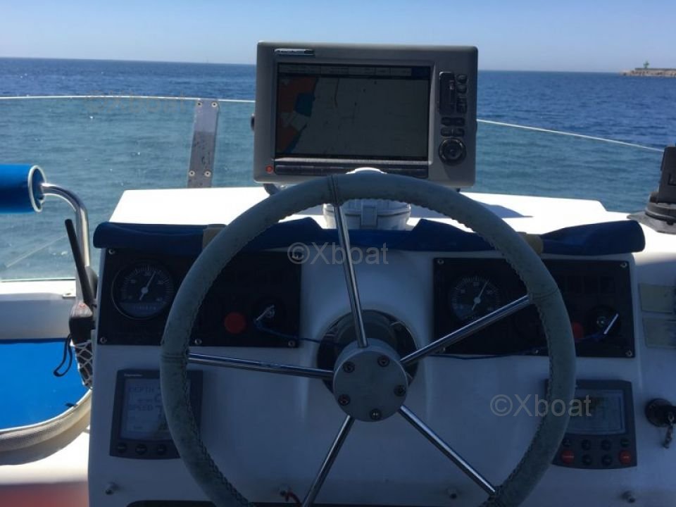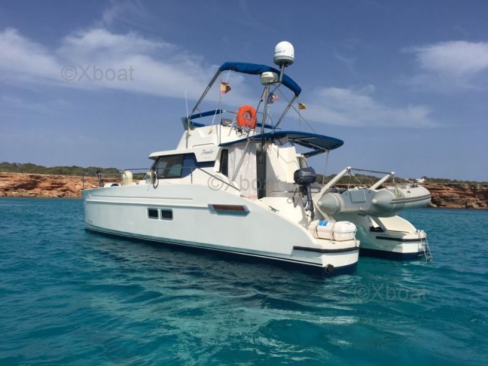 Gracias a su robusta construcción en poliéster reforzado con fibra de vidrio, este catamarán es a la vez ligero y resistente, lo que lo convierte en una elección ideal para navegar en aguas poco profundas. Los motores de 20 HP aseguran una propulsión fiable y económica, permitiendo una navegación cómoda a 7 nudos.