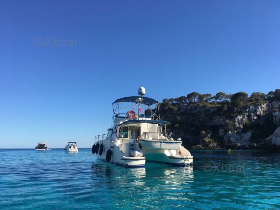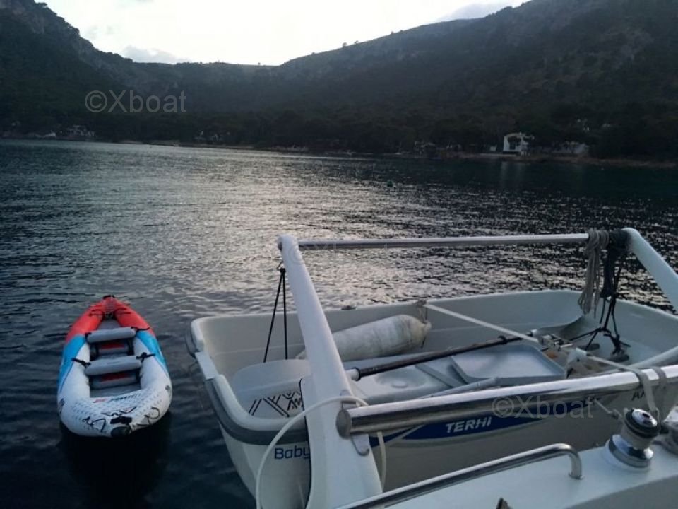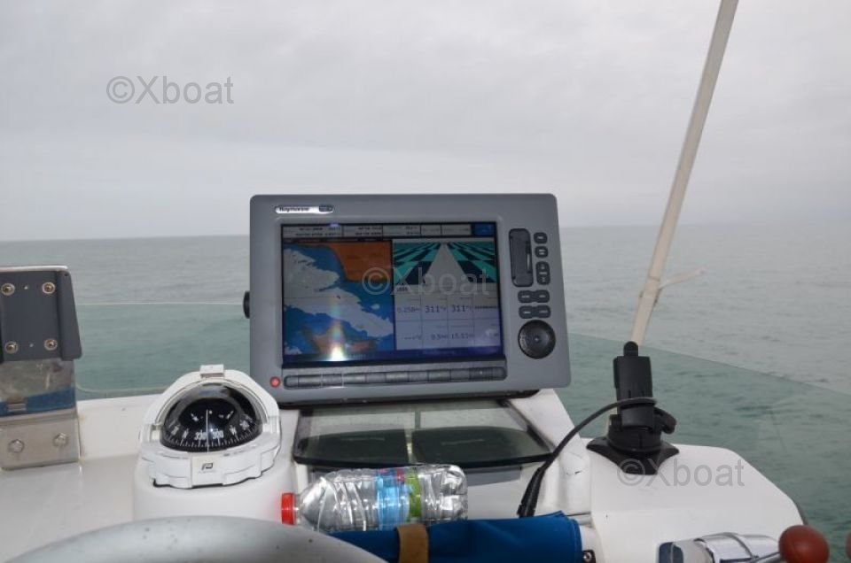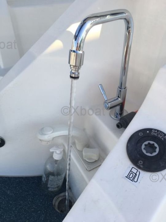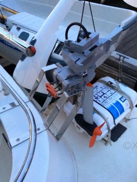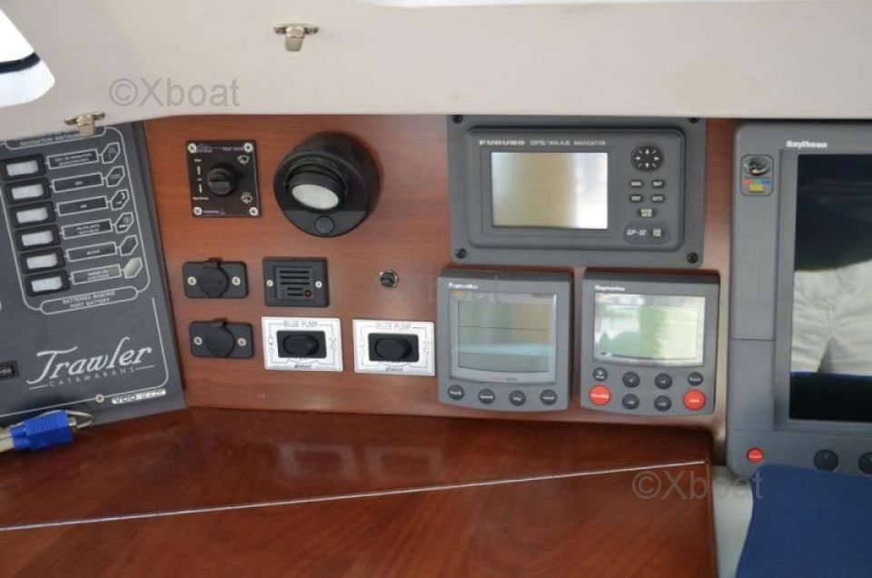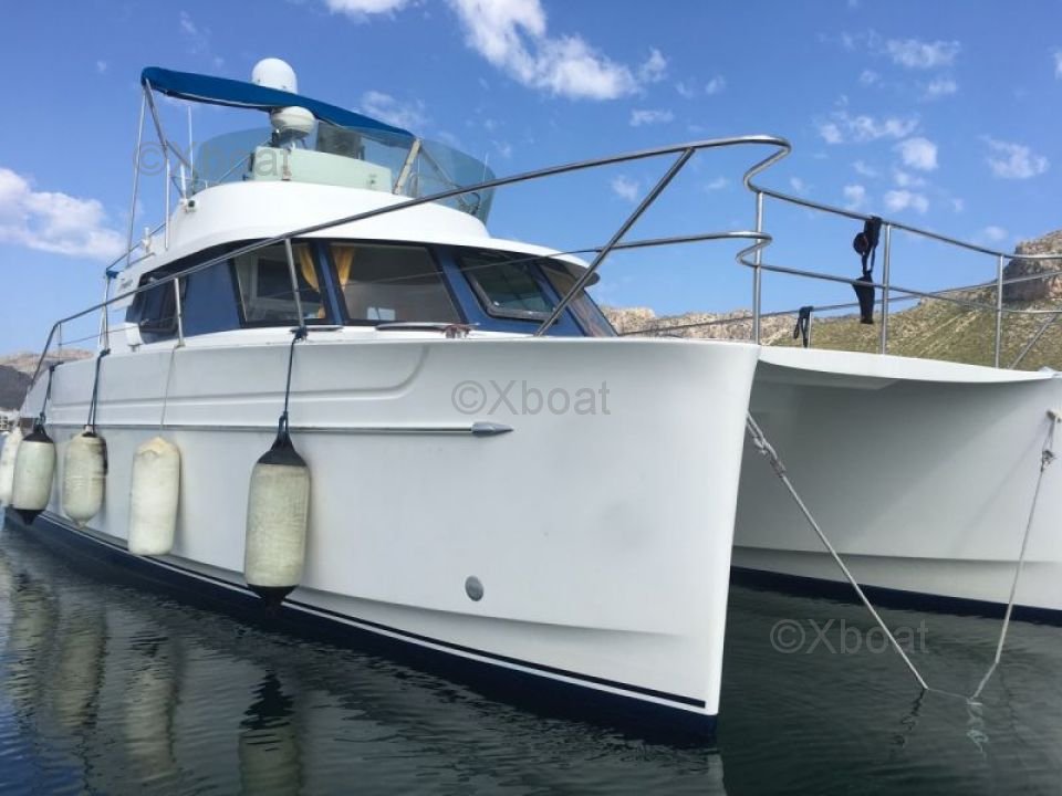 Gracias a su robusta construcción en poliéster reforzado con fibra de vidrio, este catamarán es a la vez ligero y resistente, lo que lo convierte en una elección ideal para navegar en aguas poco profundas. Los motores de 20 HP aseguran una propulsión fiable y económica, permitiendo una navegación cómoda a 7 nudos.