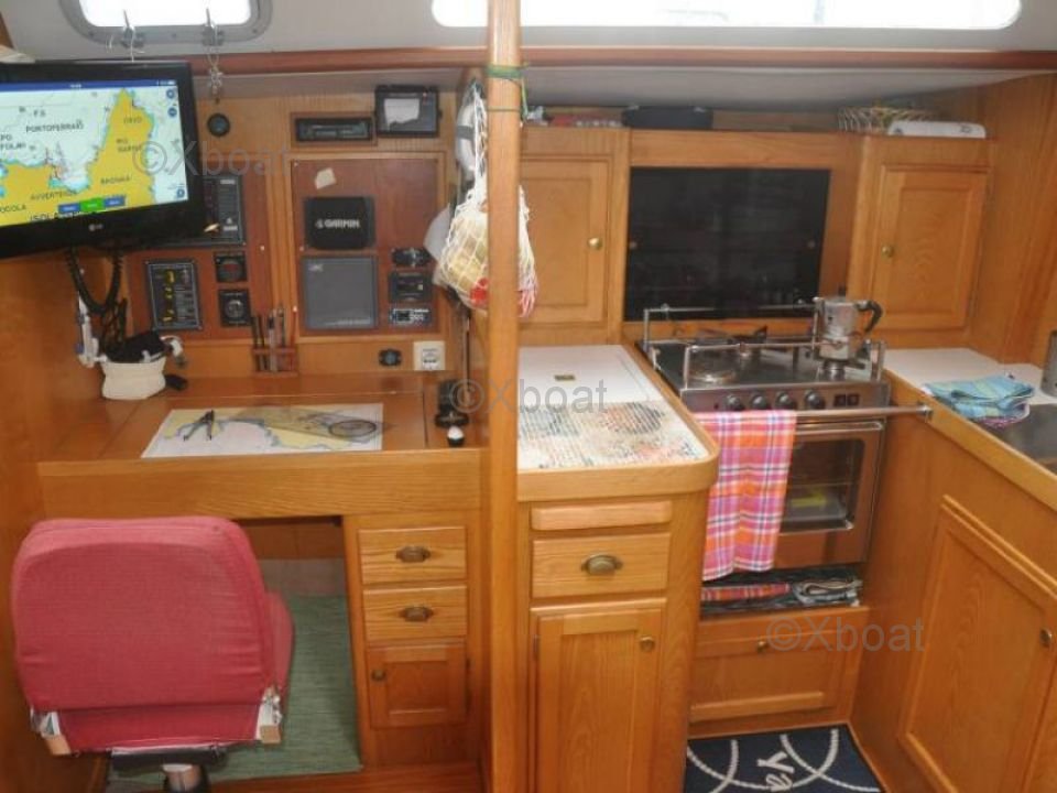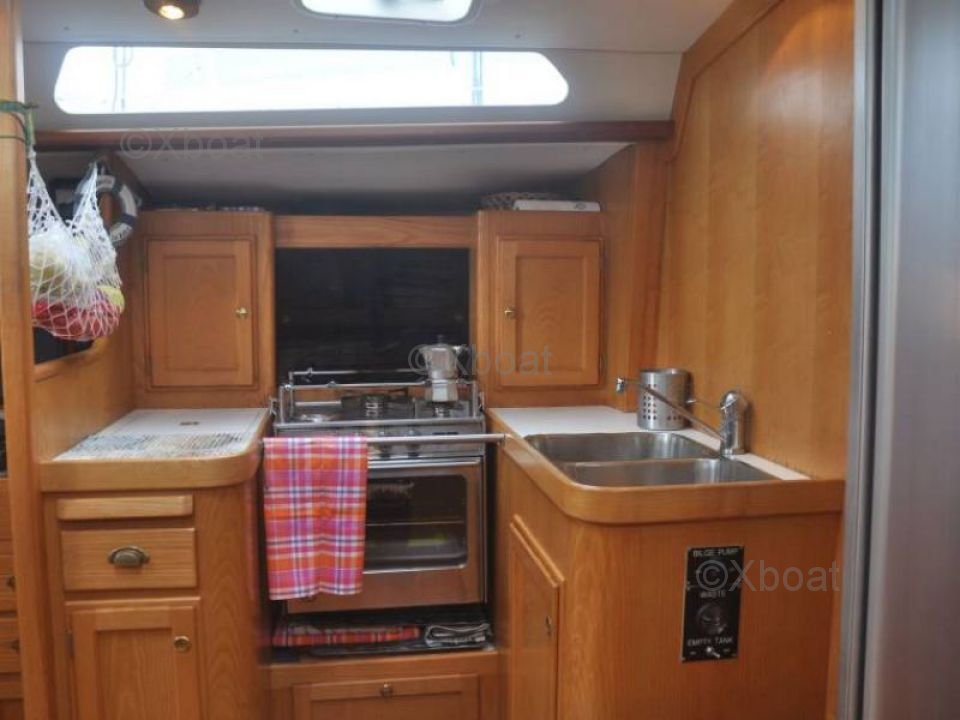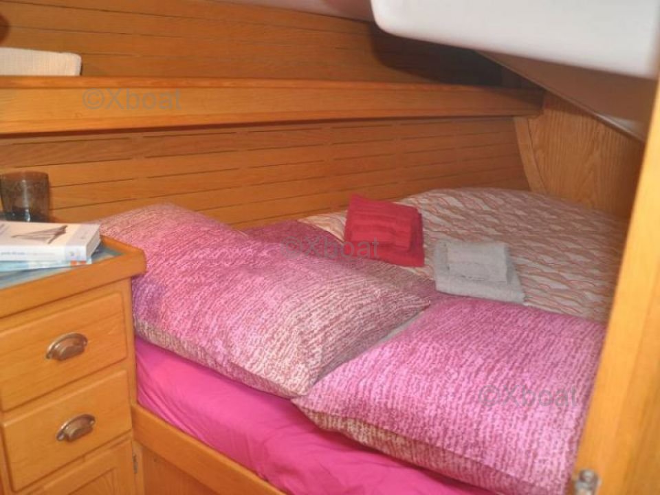 En el interior, el barco cuenta con tres cabinas dobles, proporcionando una comodidad óptima para largos cruceros. La cocina está bien equipada con un fregadero, un refrigerador y una cocina de gas. El baño es funcional con una ducha separada.