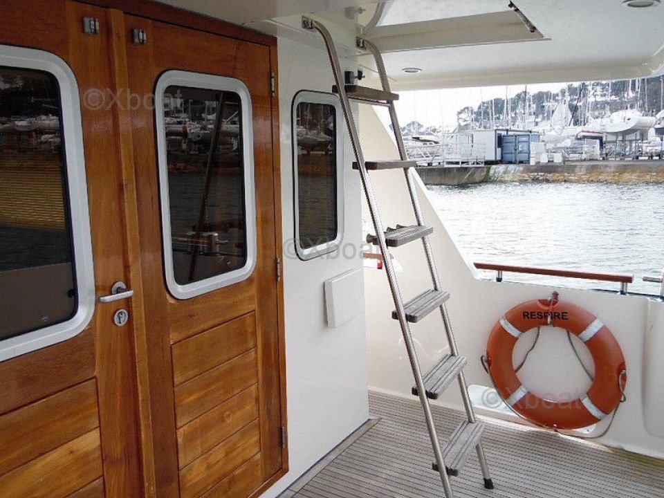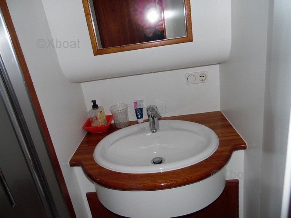 Equipamiento: Este modelo está equipado con numerosas comodidades modernas, como sistemas de navegación avanzados, un radar, GPS, un sonar y instrumentos de comunicación. La cocina está bien equipada con un refrigerador, un congelador y una estufa de gas, permitiendo la preparación de comidas completas a bordo.