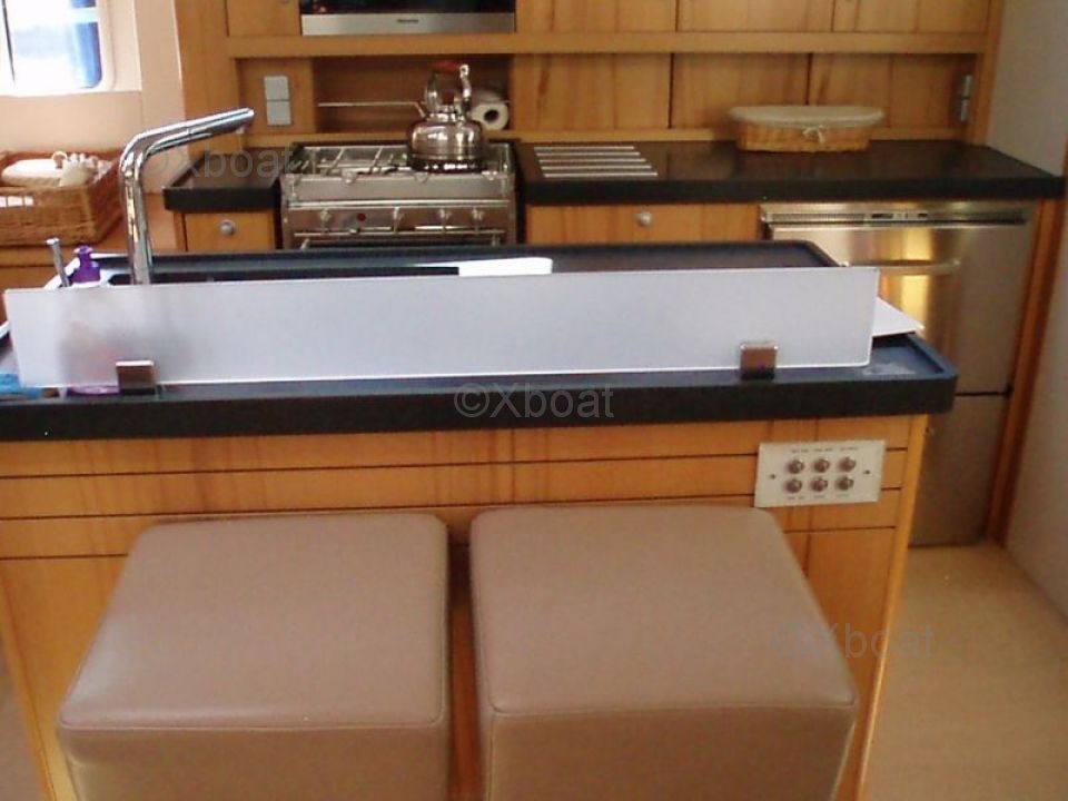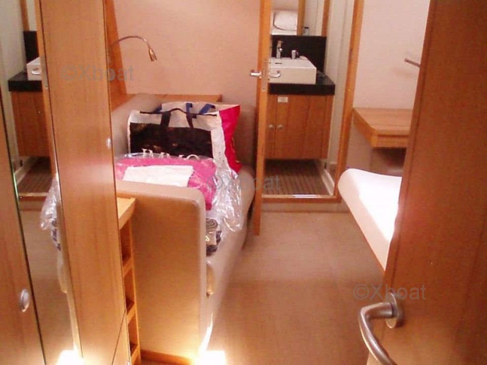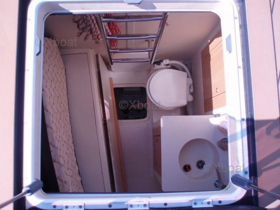 El Hanse 630e está equipado con un sistema de velas enrollables, que facilita enormemente las maniobras y permite navegar con una tripulación reducida. La cubierta es espaciosa y bien distribuida, ofreciendo espacios de vida cómodos y funcionales. En el interior, el barco cuenta con tres cabinas dobles, cada una con su propio baño, asegurando un alto nivel de comodidad para los largos viajes.