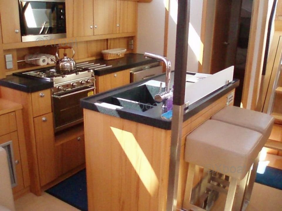 La construcción del Hanse 630e es robusta y moderna, utilizando materiales de alta calidad para garantizar durabilidad y rendimiento. El diseño interior es elegante y moderno, con acabados meticulosos y equipos de última generación.