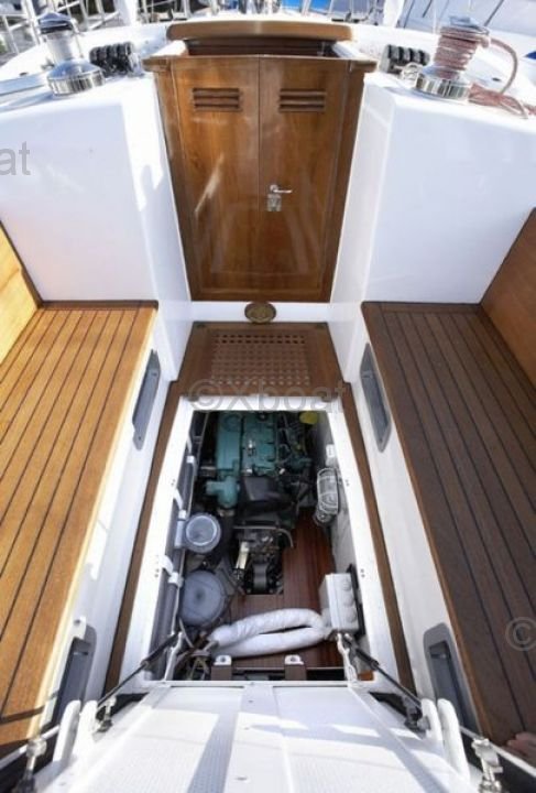 El Mancini 40 Sloop/Cutter One Off está equipado con un motor auxiliar de 50 caballos de fuerza, proporcionando suficiente potencia para maniobras en el puerto y situaciones de poco viento. El casco de fibra de vidrio está reforzado para garantizar robustez y durabilidad, al mismo tiempo que ofrece una excelente estabilidad en el mar.