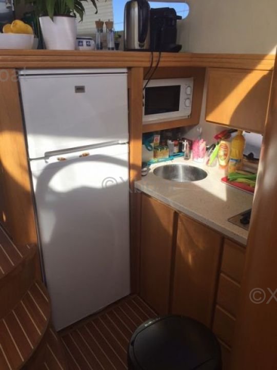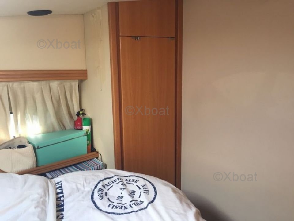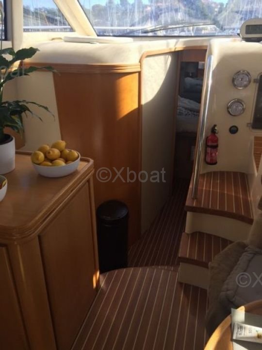Distribución interior: El interior del Rodman 38 Fly es espacioso y bien diseñado, con materiales de alta calidad. Cuenta con dos cabinas dobles, un baño completo y una cocina bien equipada. El salón es luminoso y ofrece una vista impresionante gracias a grandes ventanas.