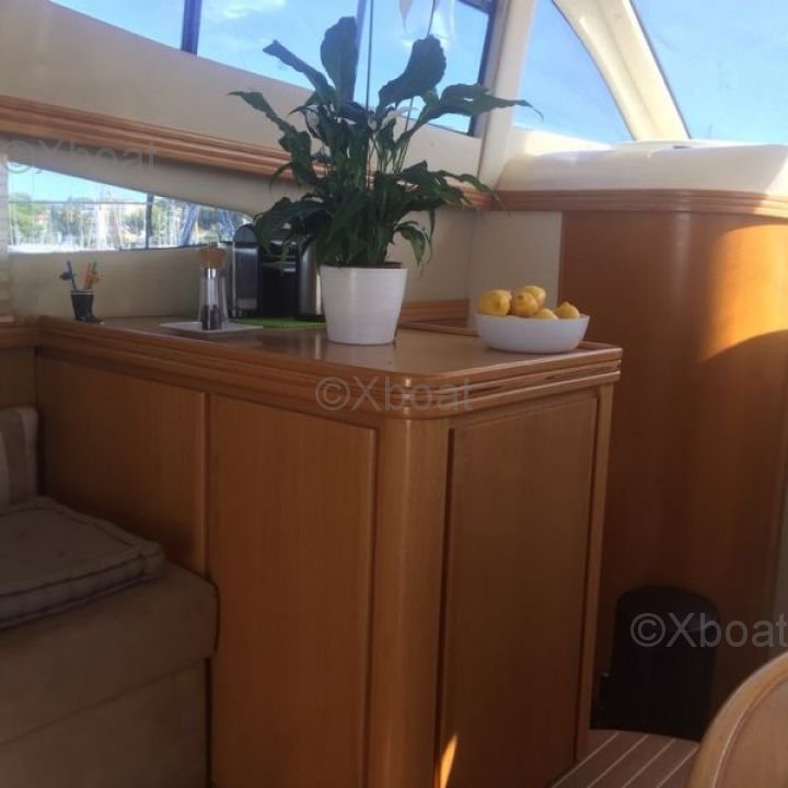 Distribución exterior: La cubierta principal es espaciosa y ofrece numerosas áreas de vida. La Flybridge es especialmente apreciada por su vista panorámica y los asientos cómodos, perfectos para días de navegación o noches bajo las estrellas.