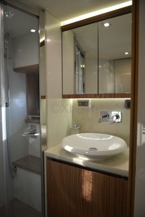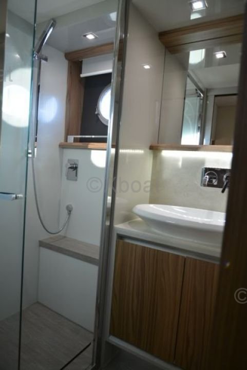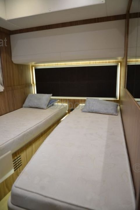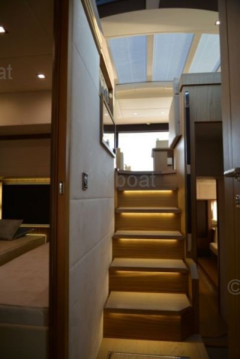 Capacidad: El Absolute 56 STY puede alojar hasta 8 personas en la configuración estándar, ofreciendo un espacio de vida cómodo y lujoso. Cuenta con 3 cabinas, incluyendo una suite principal con baño privado, para garantizar la comodidad de todos los pasajeros.