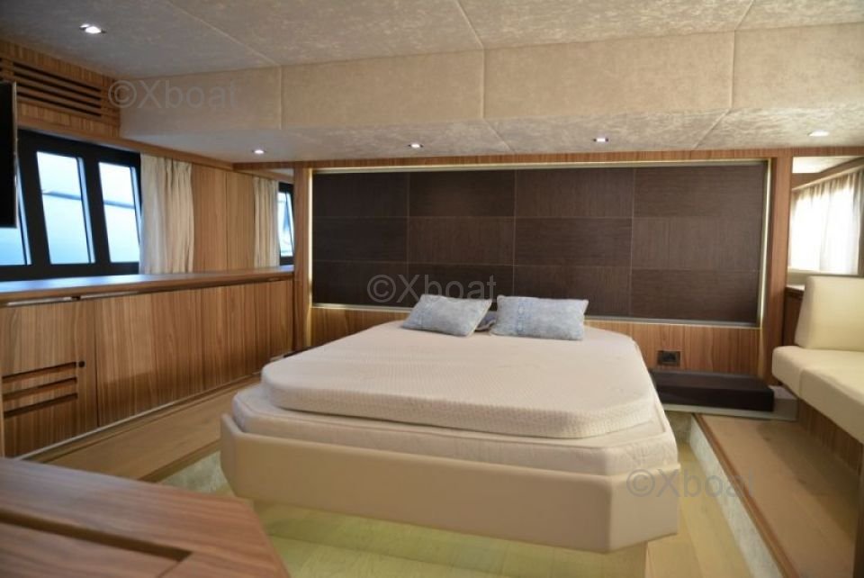 Motor: Equipado con motores MAN V8 de 1000 caballos de fuerza cada uno, este yate alcanza una velocidad de crucero de 24 nudos y una velocidad máxima de 28 nudos, asegurando un rendimiento excepcional en el agua.