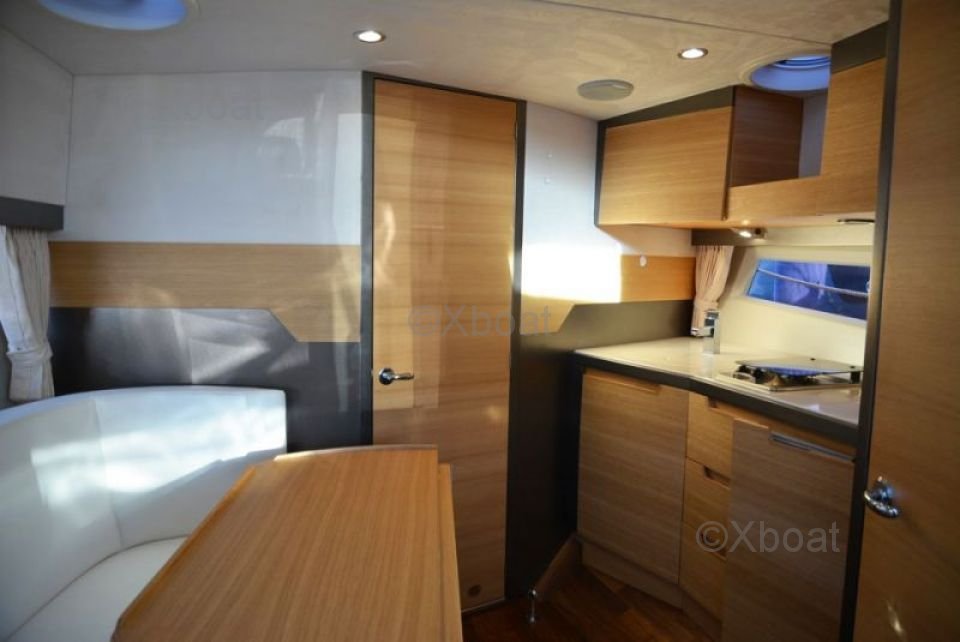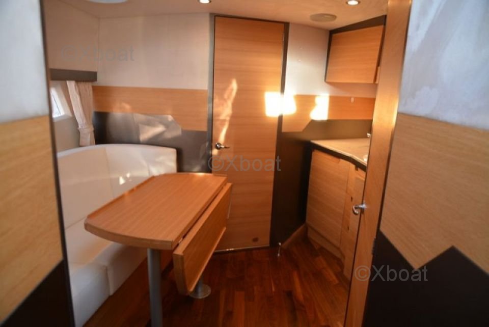 El Galeon 325 HTS está equipado con numerosas características modernas para asegurar una navegación placentera y segura. Tiene una cómoda y bien diseñada cubierta, perfecta para salidas con la familia o amigos. El interior está cuidadosamente equipado con materiales de alta calidad, ofreciendo un confort óptimo incluso para largos cruceros.