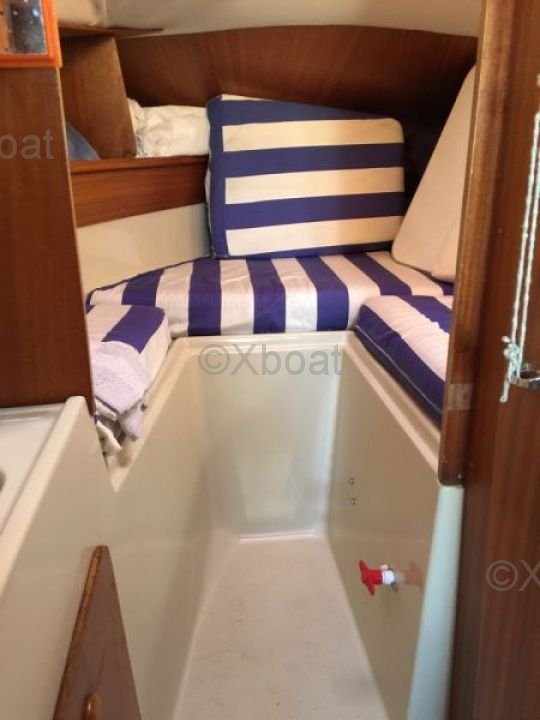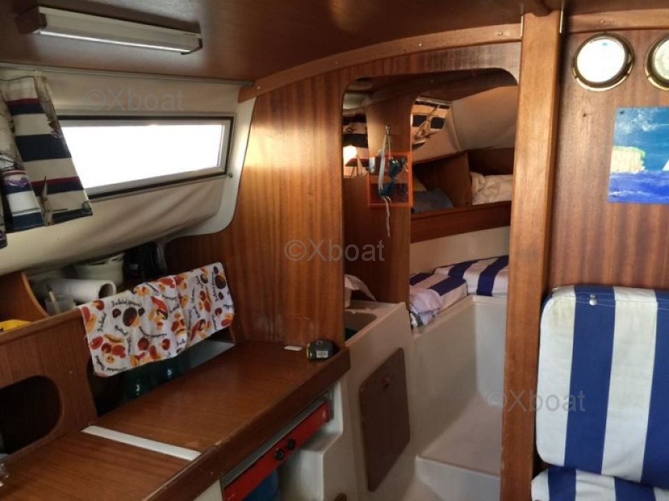 El Beneteau Evasion 25 está equipado con una cómoda y bien protegida cubierta, ofreciendo una gran habitabilidad. El interior está diseñado para maximizar el espacio de vida, con una cabina principal cómoda y una cocina funcional. La cubierta también está equipada con bancos laterales y una estación de timón central, permitiendo una navegación fácil y segura.