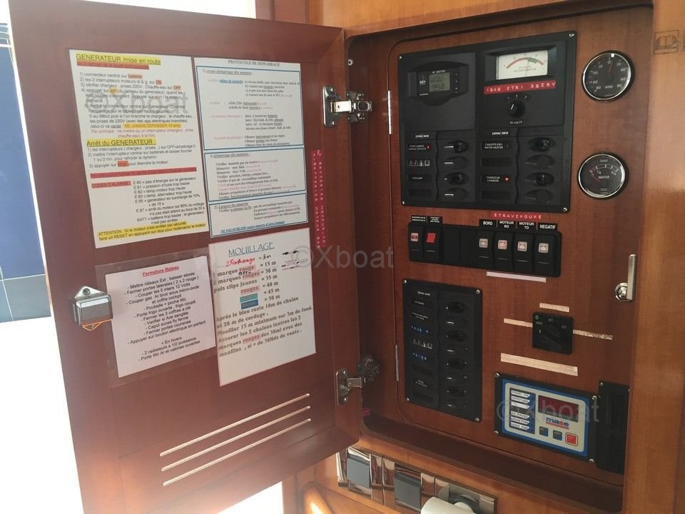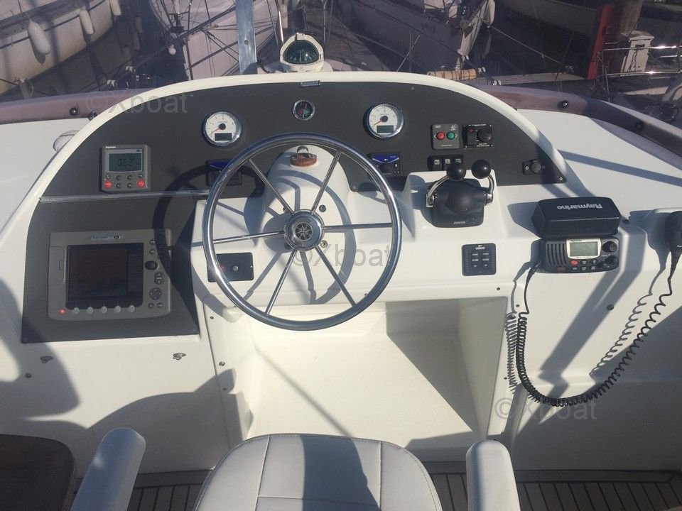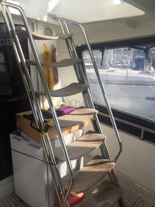 Equipamiento de cubierta: La cubierta está equipada con una cómoda popa con un salón exterior, perfecto para comer al aire libre. Una flybridge ofrece una vista panorámica y espacio adicional para relajarse o pilotar el barco.