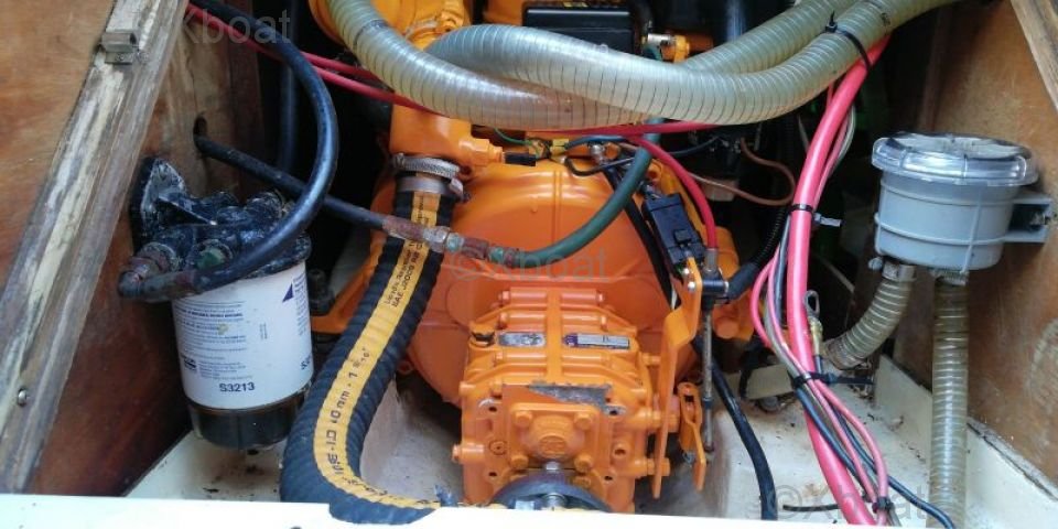 El Vega 27 está equipado con un motor auxiliar que facilita las maniobras y los movimientos en aguas tranquilas. El casco de poliéster reforzado asegura una buena resistencia y una mayor durabilidad.