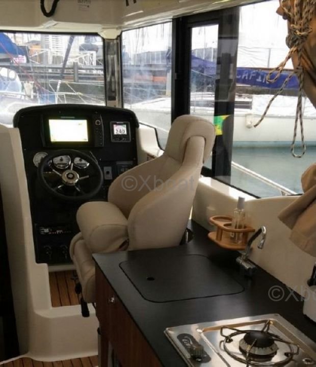 Distribución interior: El interior del barco es espacioso y bien diseñado, con una cabina principal que ofrece un cómodo espacio para dormir para 4 a 6 personas. La cocina está equipada con todo lo necesario para preparar comidas, y el baño incluye una ducha y un inodoro.
