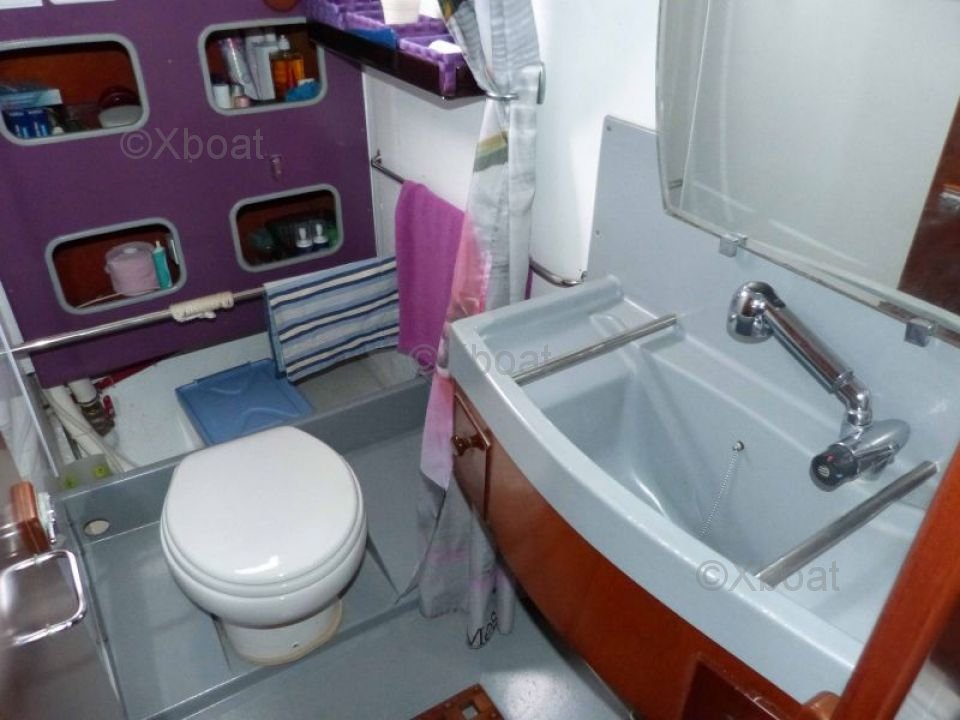 El Amel Mango está equipado con una quilla larga y un timón de bronce, lo que le proporciona una excelente estabilidad y buenas capacidades de navegación. La cockpit es espaciosa y bien protegida, ofreciendo un confort óptimo para las maniobras y el relax.