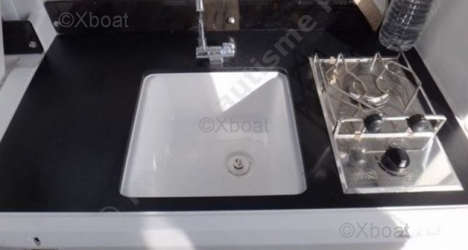 Diseño interior: La embarcación cuenta con un diseño interior cómodo con una cabina espaciosa, permitiendo dormir a bordo. La cocina está bien equipada con un fregadero, un refrigerador y armarios de almacenamiento. El baño incluye un inodoro y una ducha.
