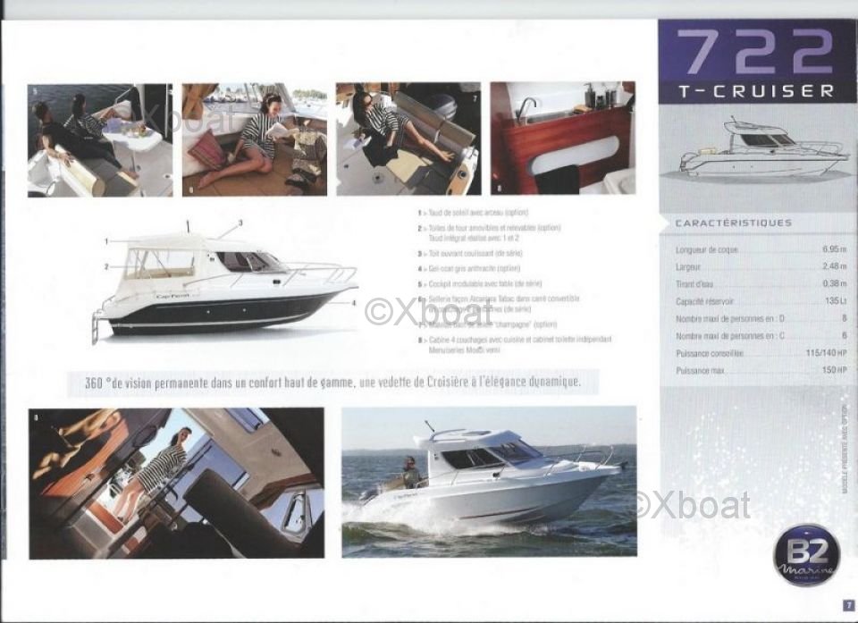 El Cap Ferret 722 TC de B2 Marine es una embarcación versátil y elegante, diseñada para ofrecer una experiencia náutica excepcional. Este modelo es particularmente apreciado por su comodidad, rendimiento y diseño moderno.