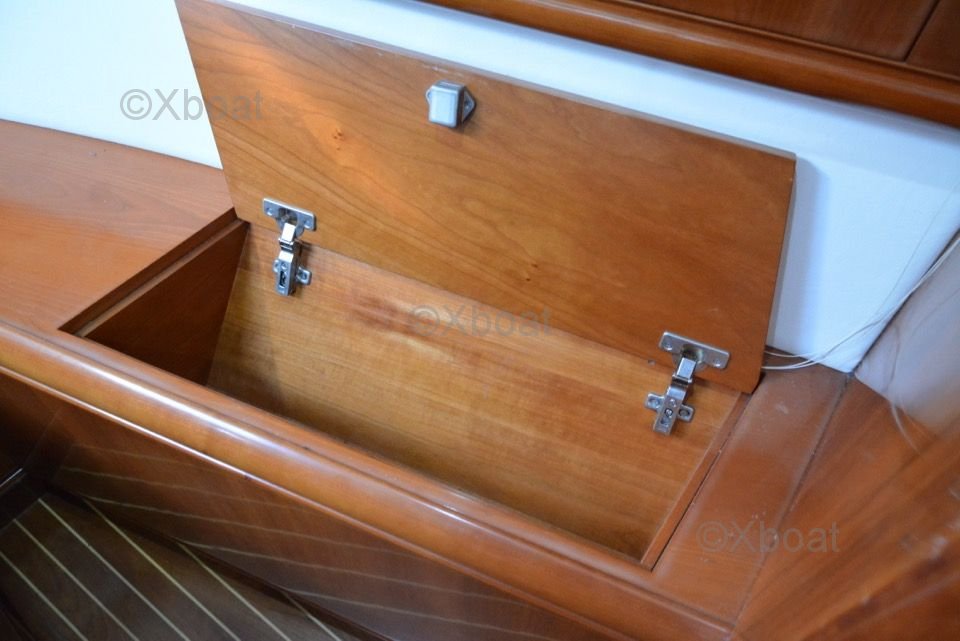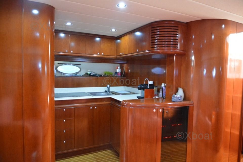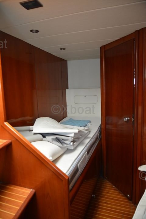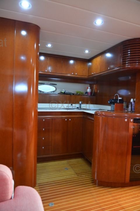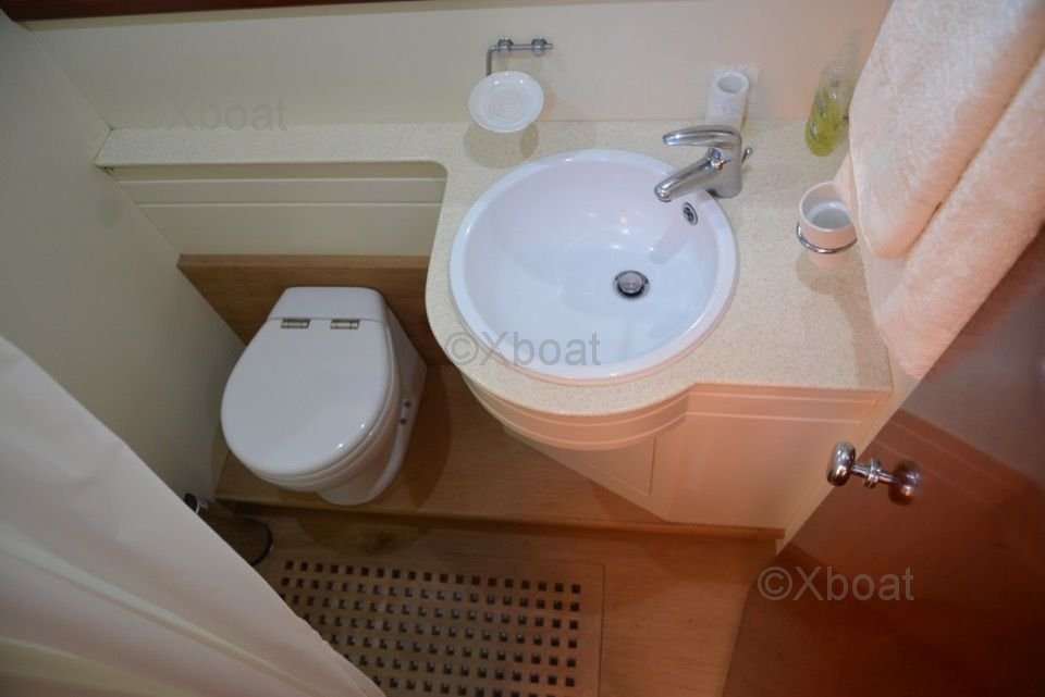 El interior del barco está diseñado con materiales de alta calidad, ofreciendo un ambiente lujoso y espacioso. Las cabinas están equipadas con camas cómodas, baños privados y abundante almacenamiento. La sala de estar y la cubierta de popa están diseñadas para maximizar el espacio de vida y ofrecer vistas impresionantes del horizonte.