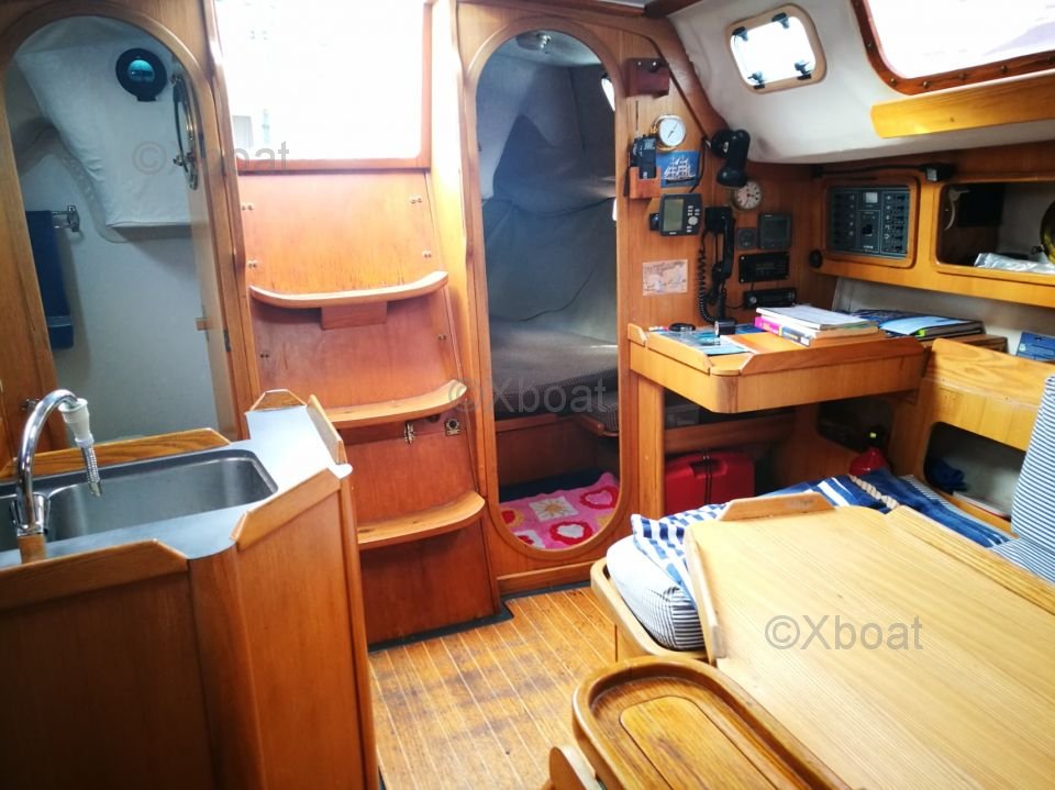 El interior del FEELING 326 es espacioso y bien diseñado, con una cómoda cabina principal y literas para 6 personas. La cocina está bien equipada y tiene todo lo necesario para preparar comidas a bordo. La cubierta de popa es amplia y ofrece suficiente espacio para relajarse y disfrutar del tiempo en el mar.